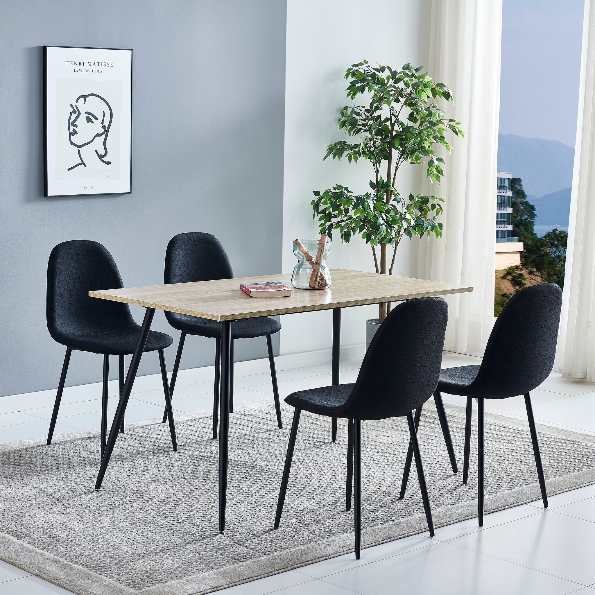Modern 4-Piece Dining Table Set with 3 Chairs for Dining Room