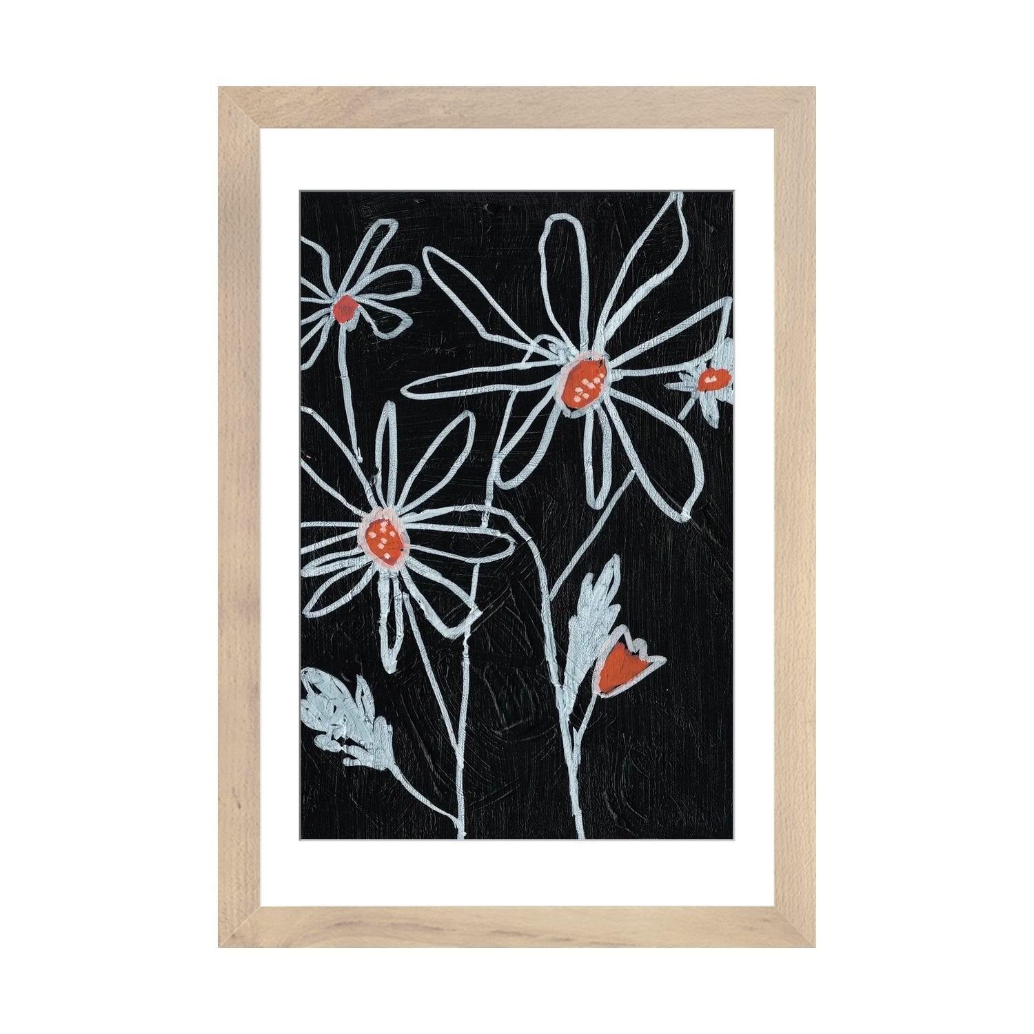 Designart "Retro Doodles Flowers" Traditional Framed Art Print