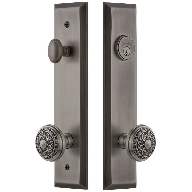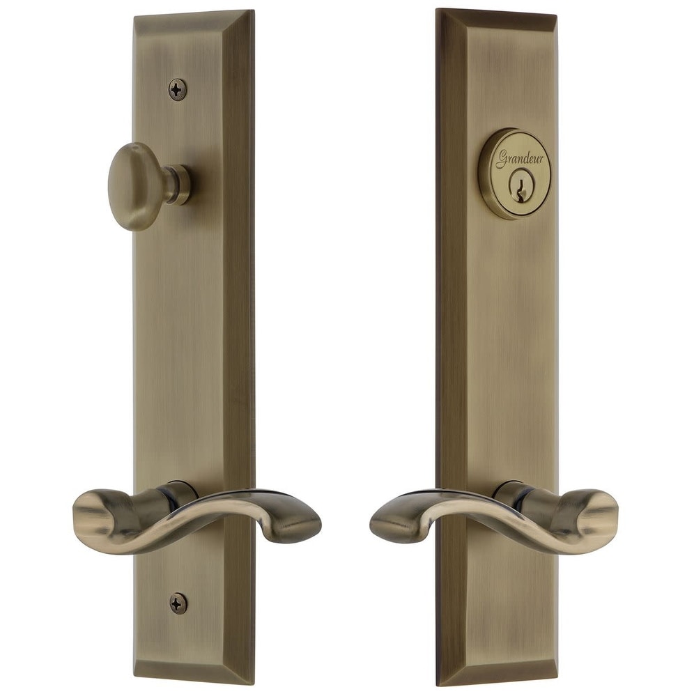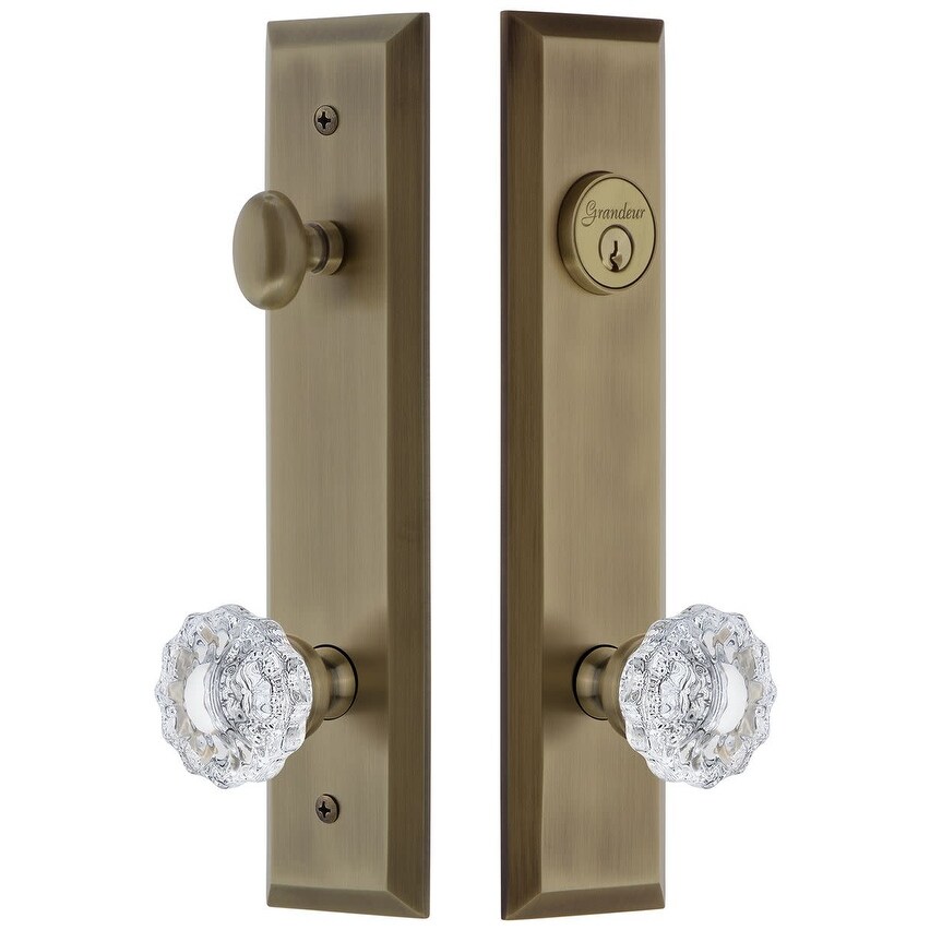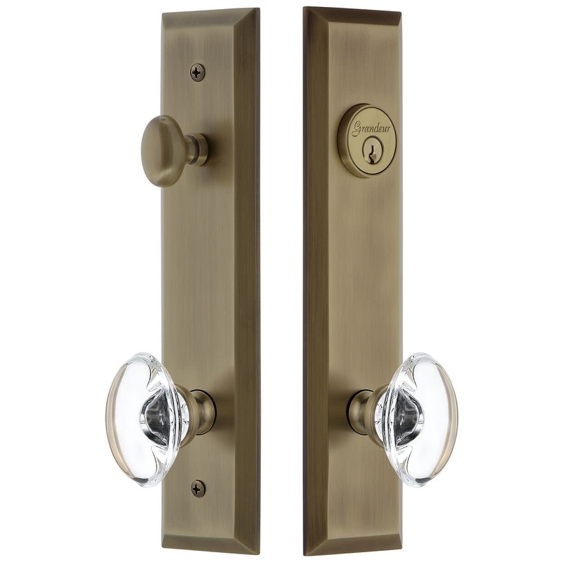 Grandeur Fifth Avenue Solid Brass Tall Plate Passage Door Knob Set