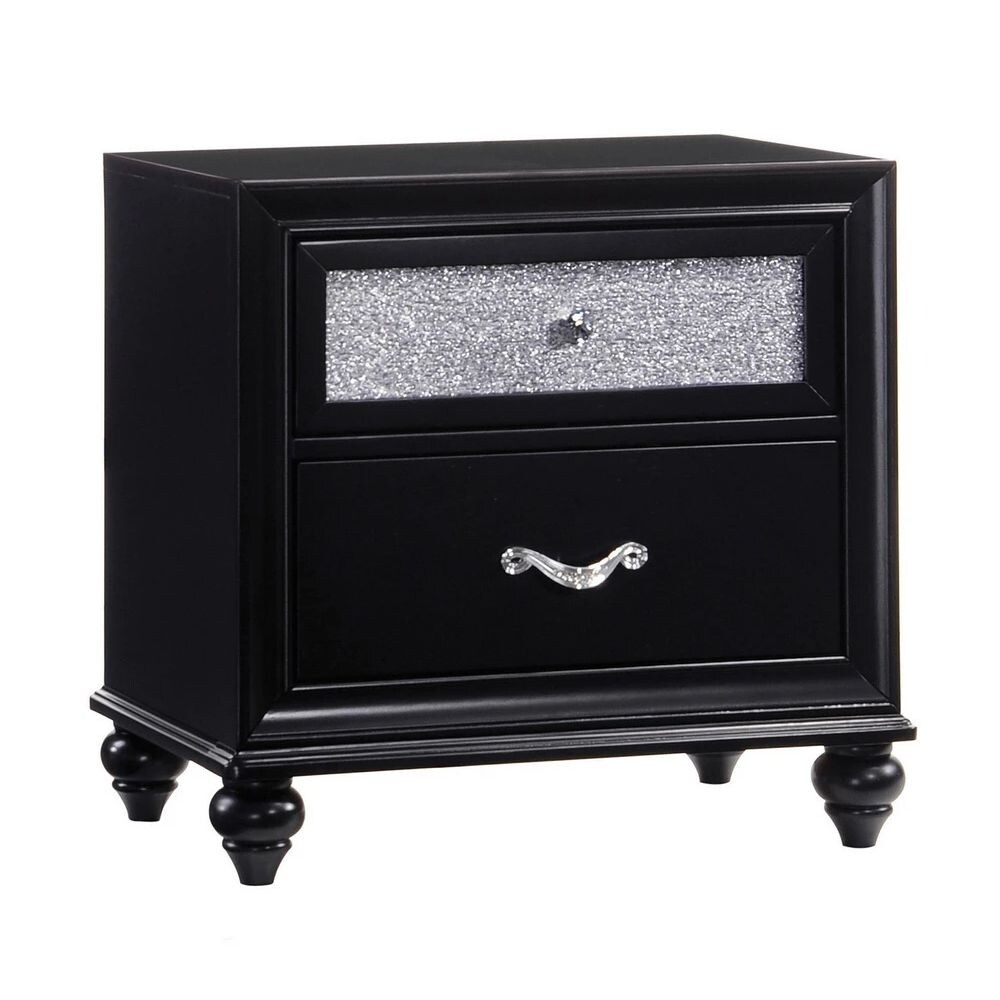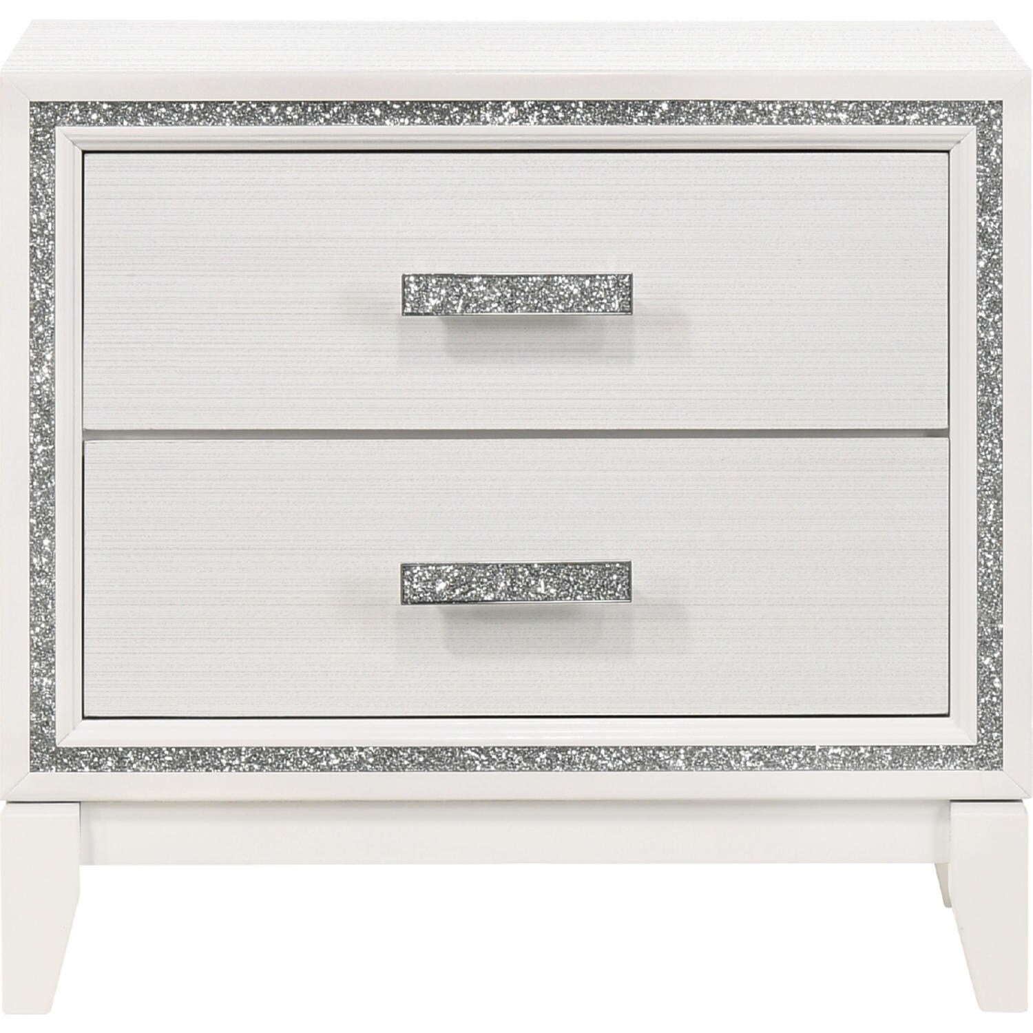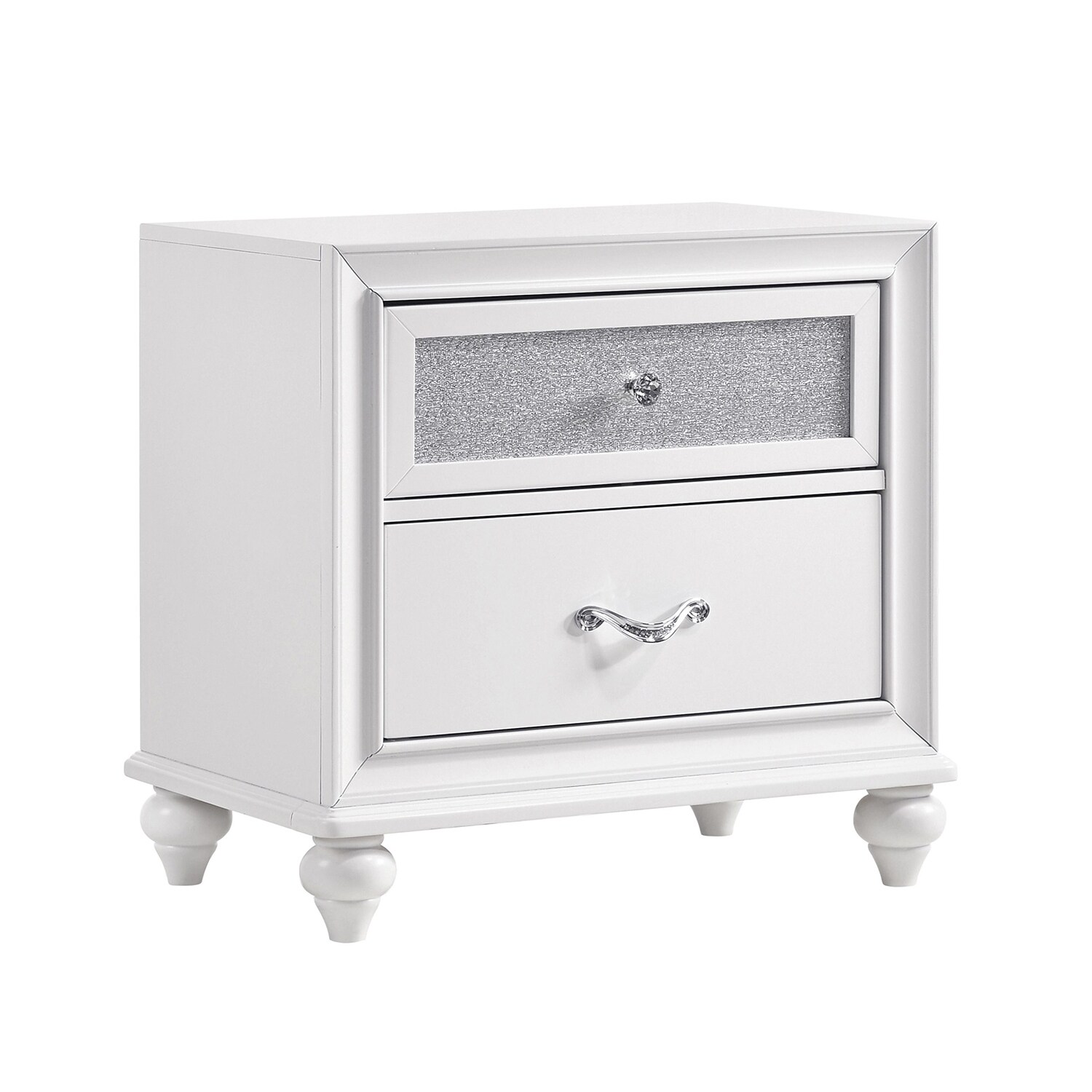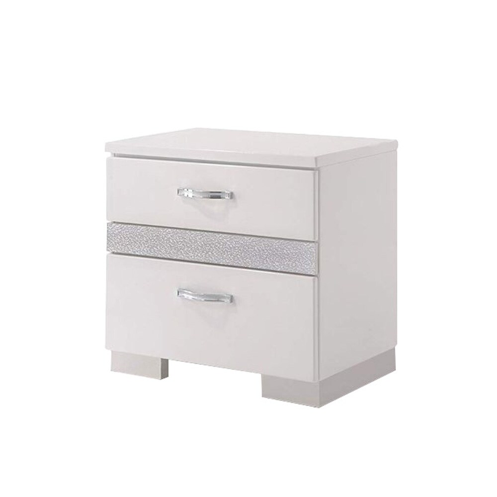 2 Drawers Nightstand With Acrylic Crystal Accent, Grey and White