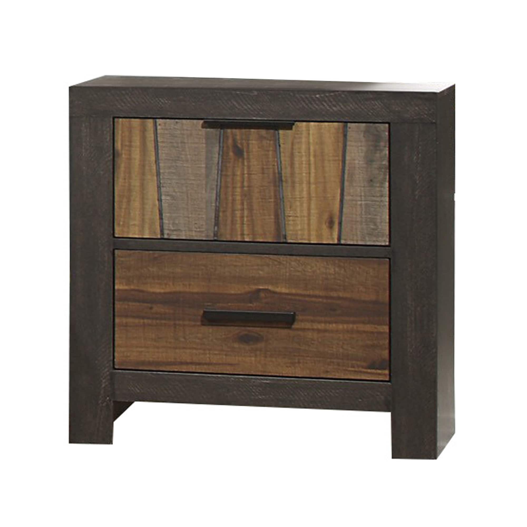 Plank Style 2 Drawer Wooden Nightstand with Metal Bar Handles, Brown