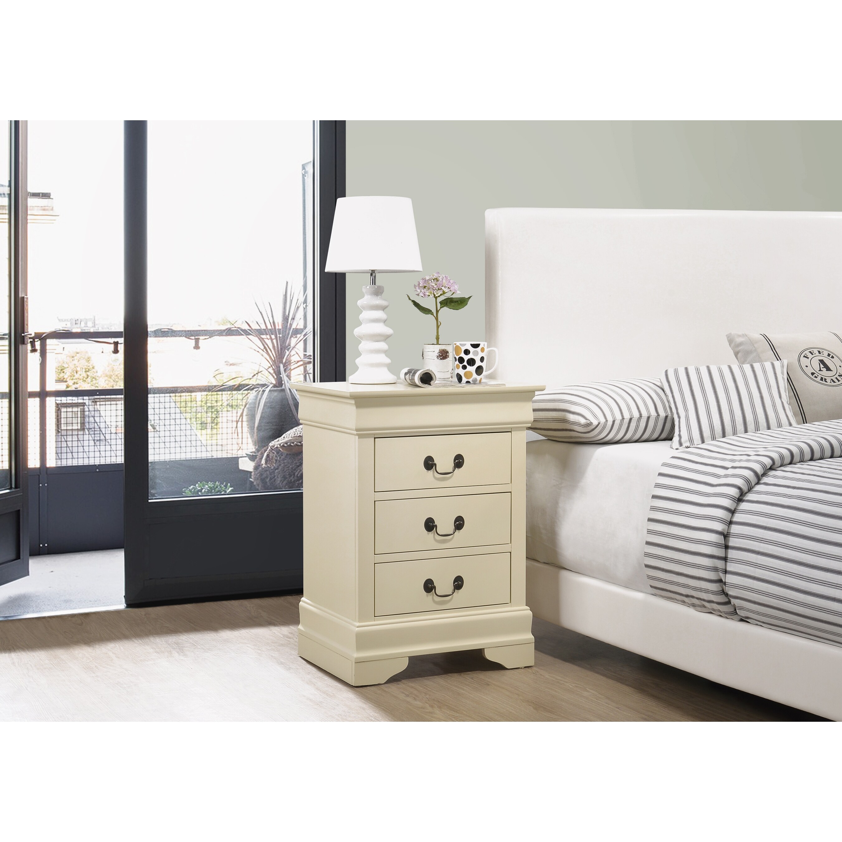 16.9" Solid Pine Wood 3 Drawers Nightstand with Nickel-Hued Knobs