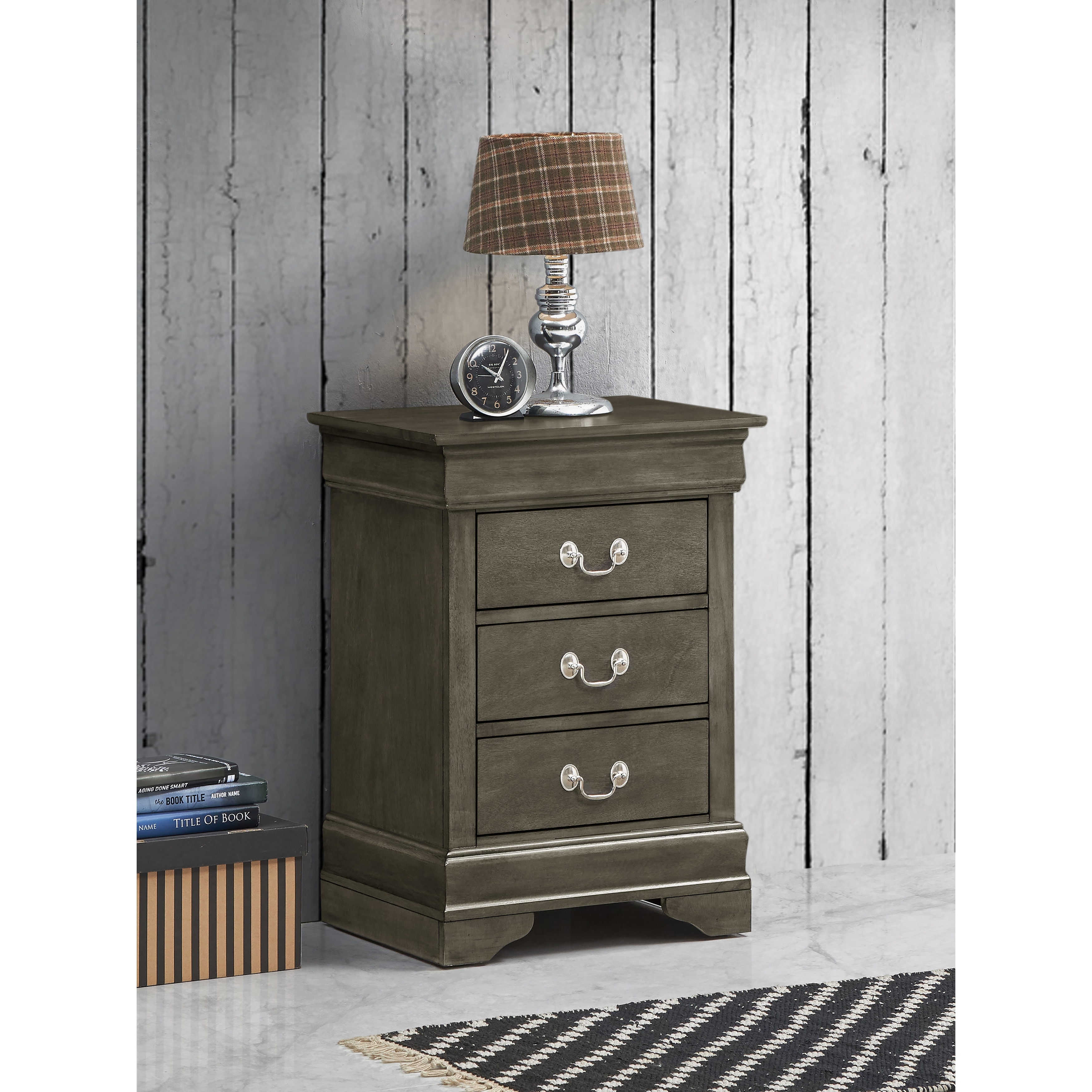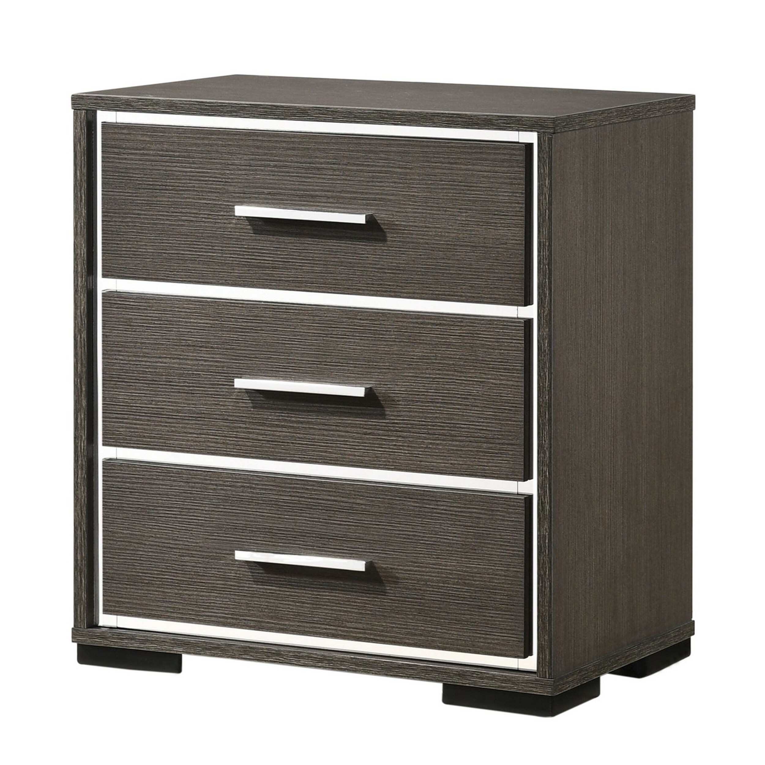3 Drawer Wooden Nightstand with Mirror Trim Accents, Gray