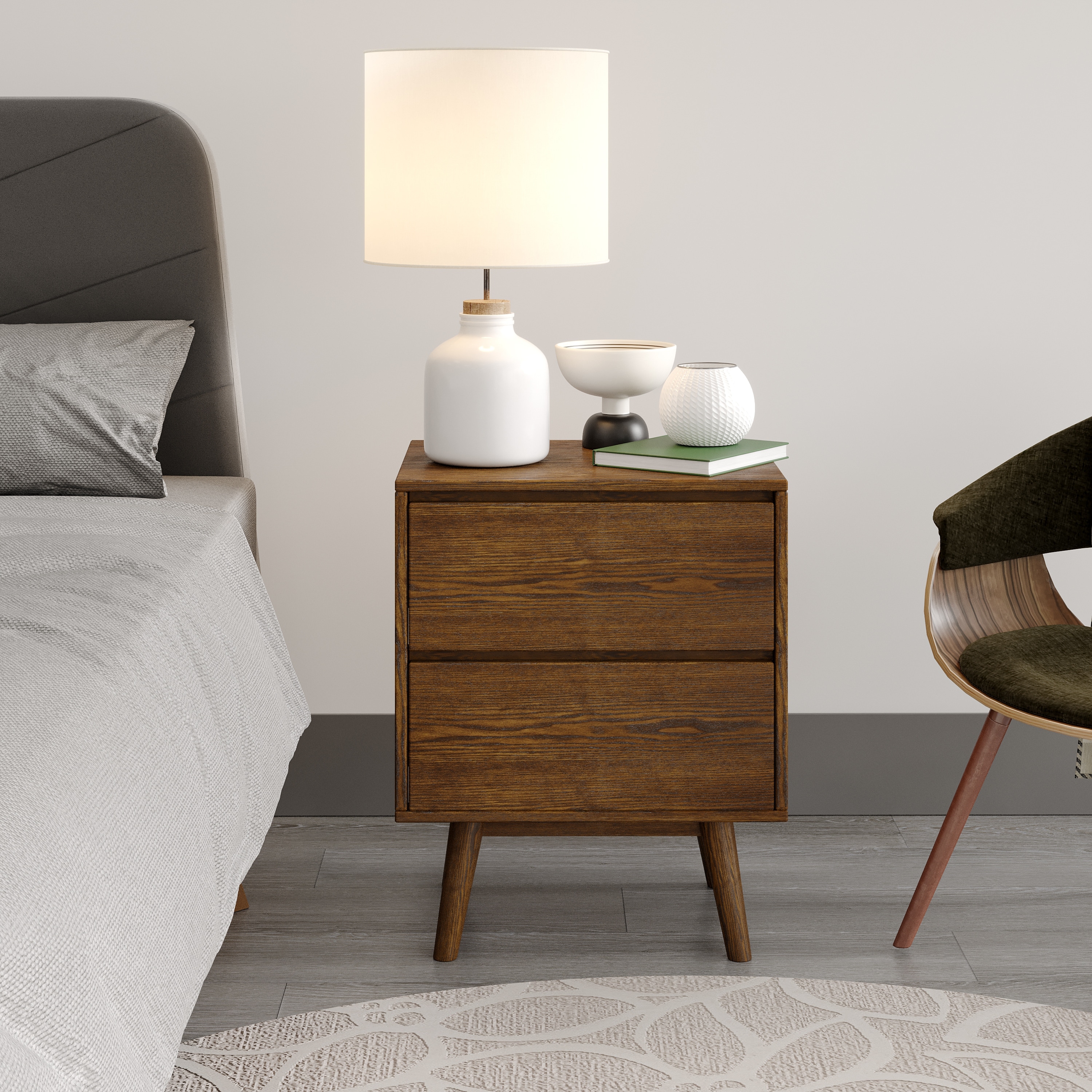 Latte Mid Century Modern Wood 2 Drawer Nightstand