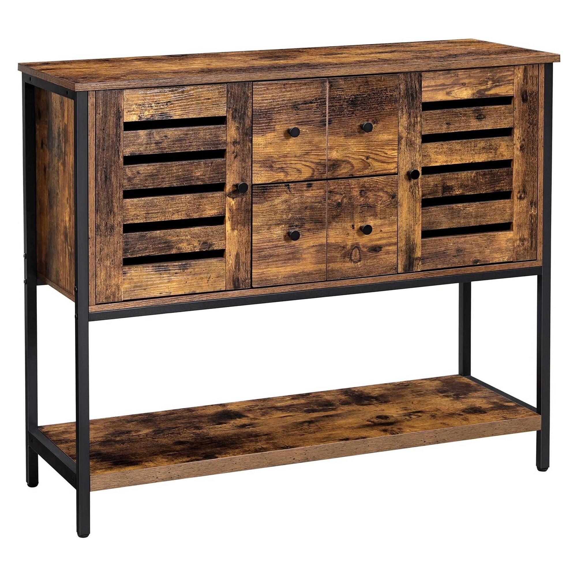 39 Inch Wood Sideboard Buffet Cabinet, 2 Doors, 2 Drawers, Brown, Black
