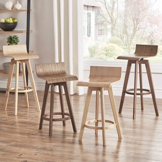 Ellery Mid-Century Modern Swivel Wood Stool (Set of 2) iNSPIRE Q Modern