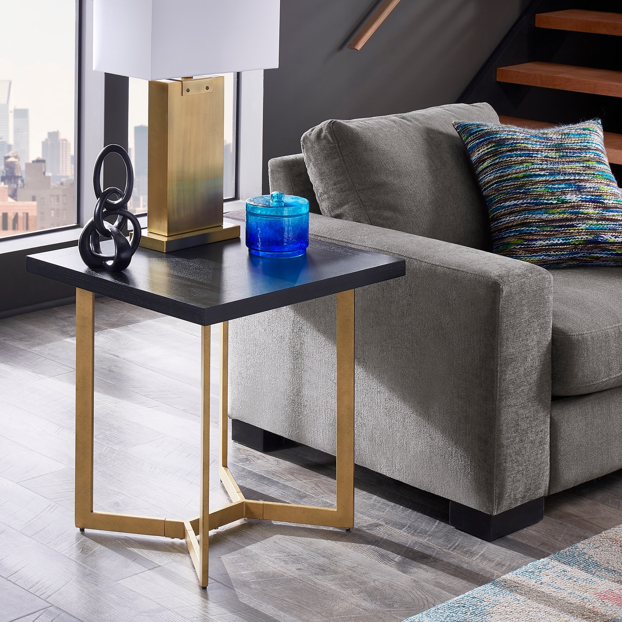 Cheyenne Black and Gold Metal Base End Table by iNSPIRE Q Modern