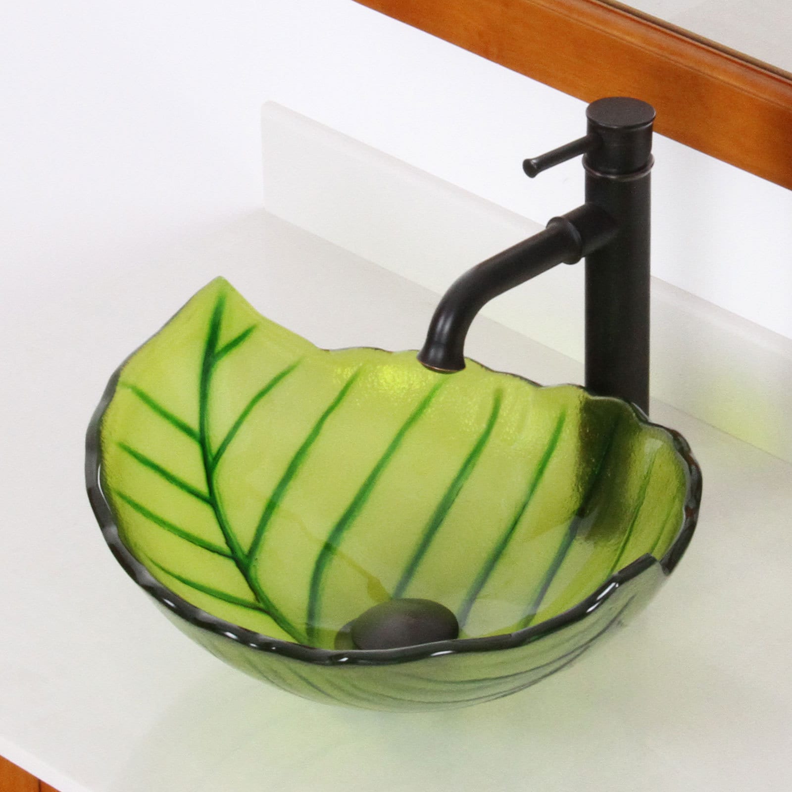 Elite Spring Leaves Design Tempered Glass Bathroom Vessel Sink