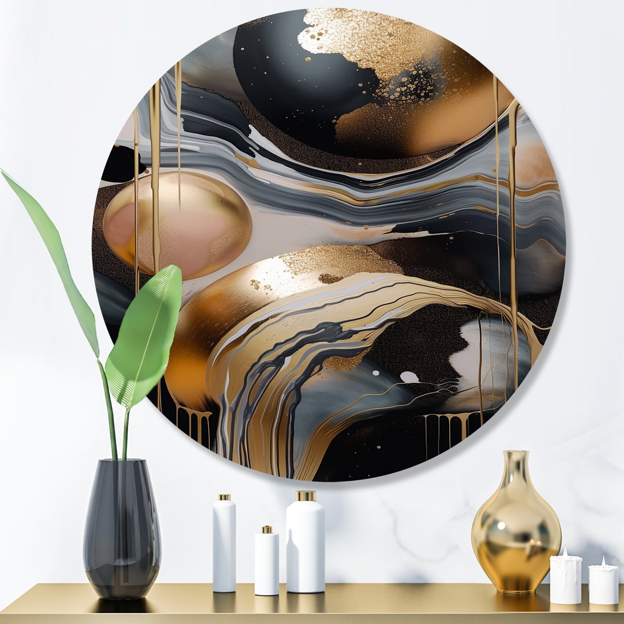 Designart "Gold And Black Marbled Euphoria V" Abstract Marble Metal Round Wall Art