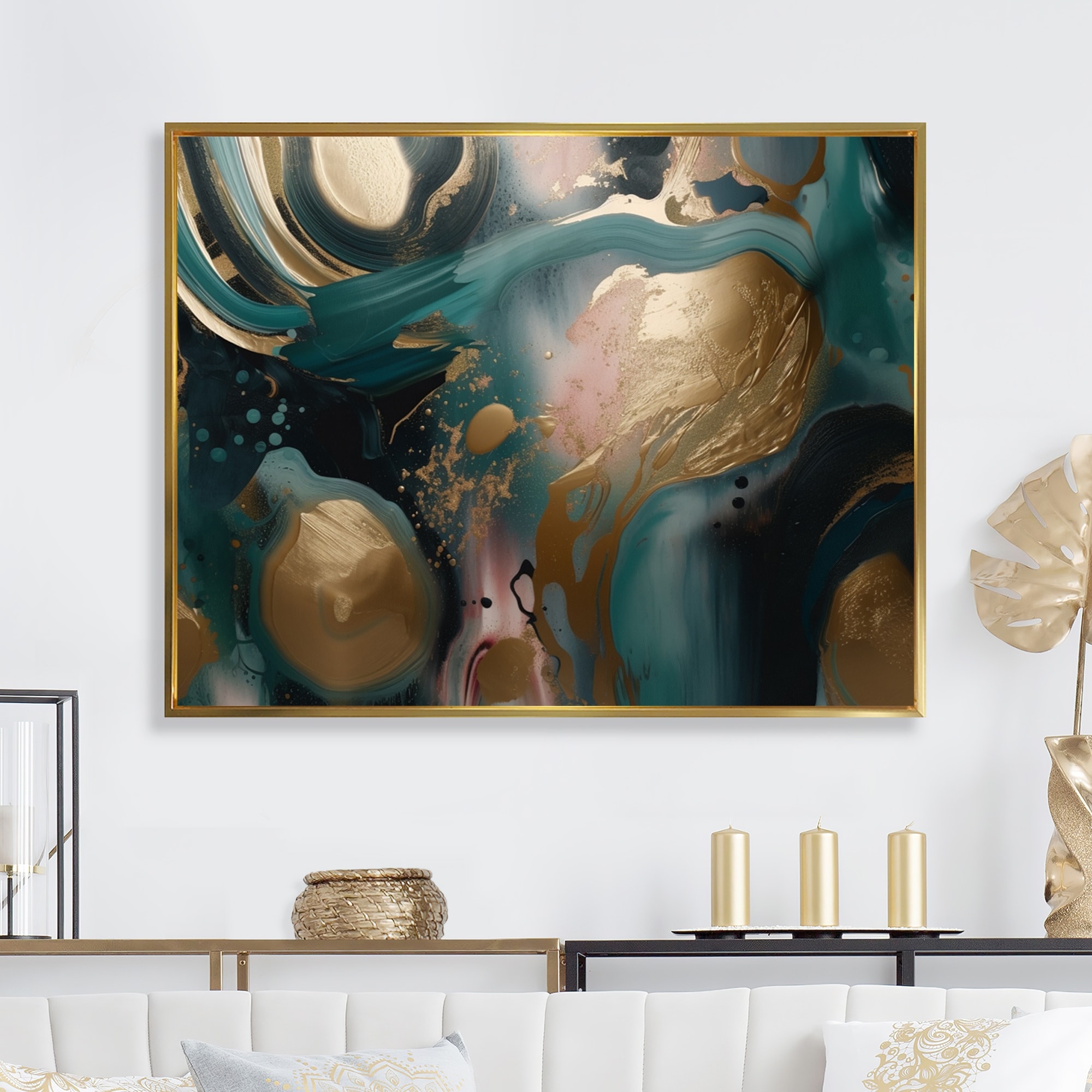 Designart "Gold And Green Marbled Euphoria V" Abstract Marble Framed Canvas Wall Art