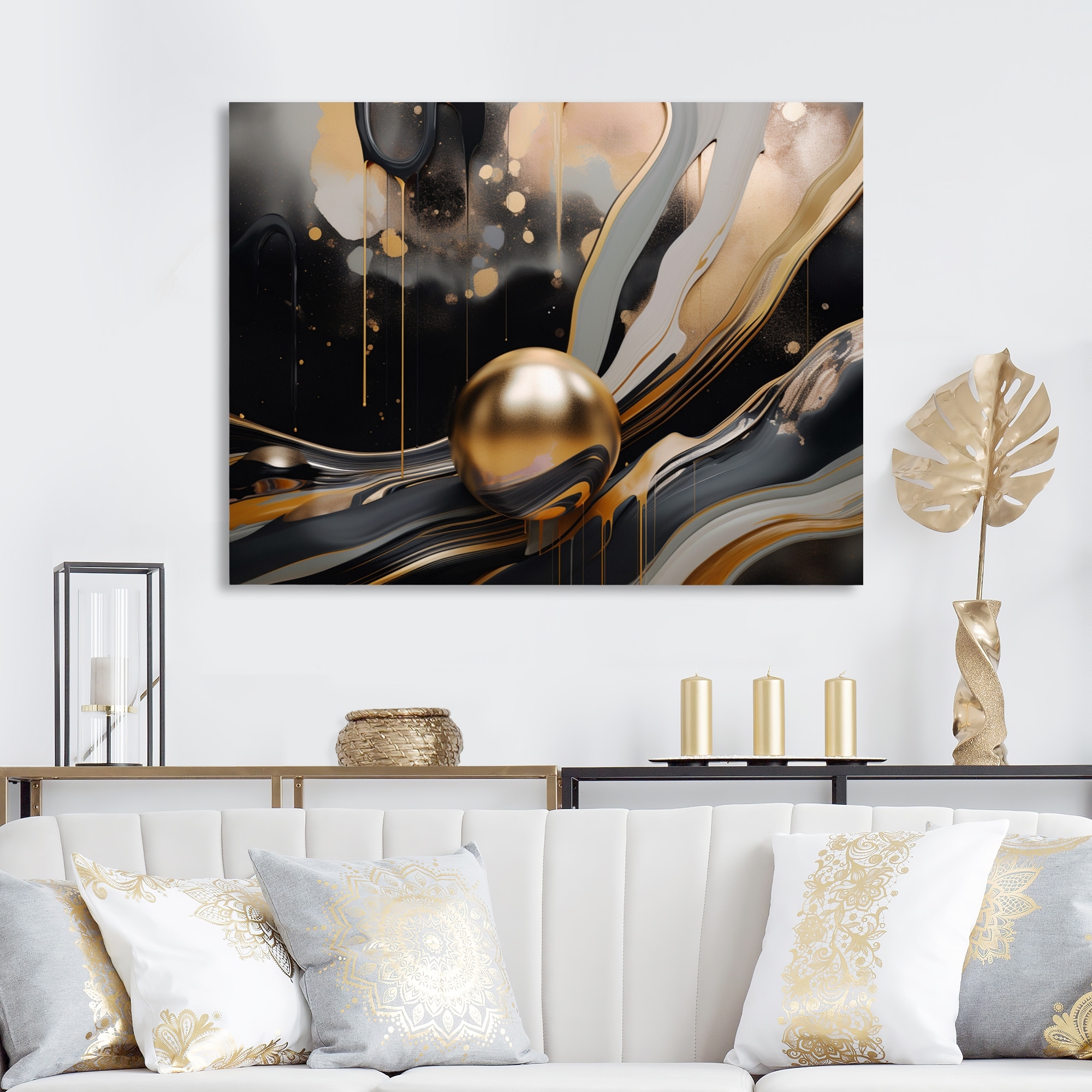 Designart "Gold And Black Marbled Euphoria I" Abstract Marble Canvas Art Print