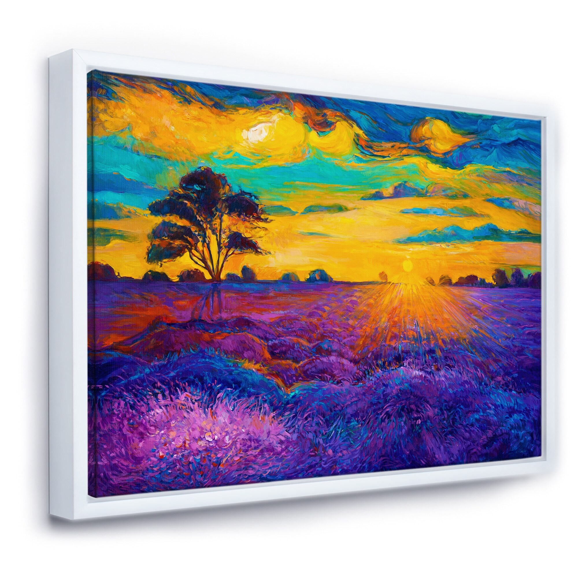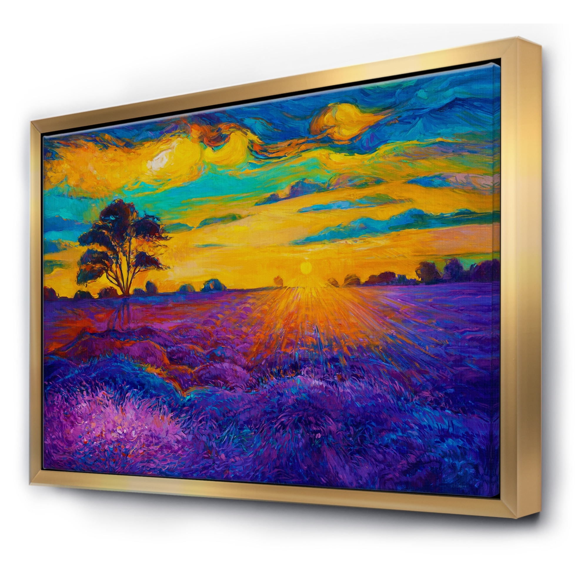 Designart "Blossoming Lavender Fields During Evening Glow II" Traditional Framed Canvas Wall Art Print