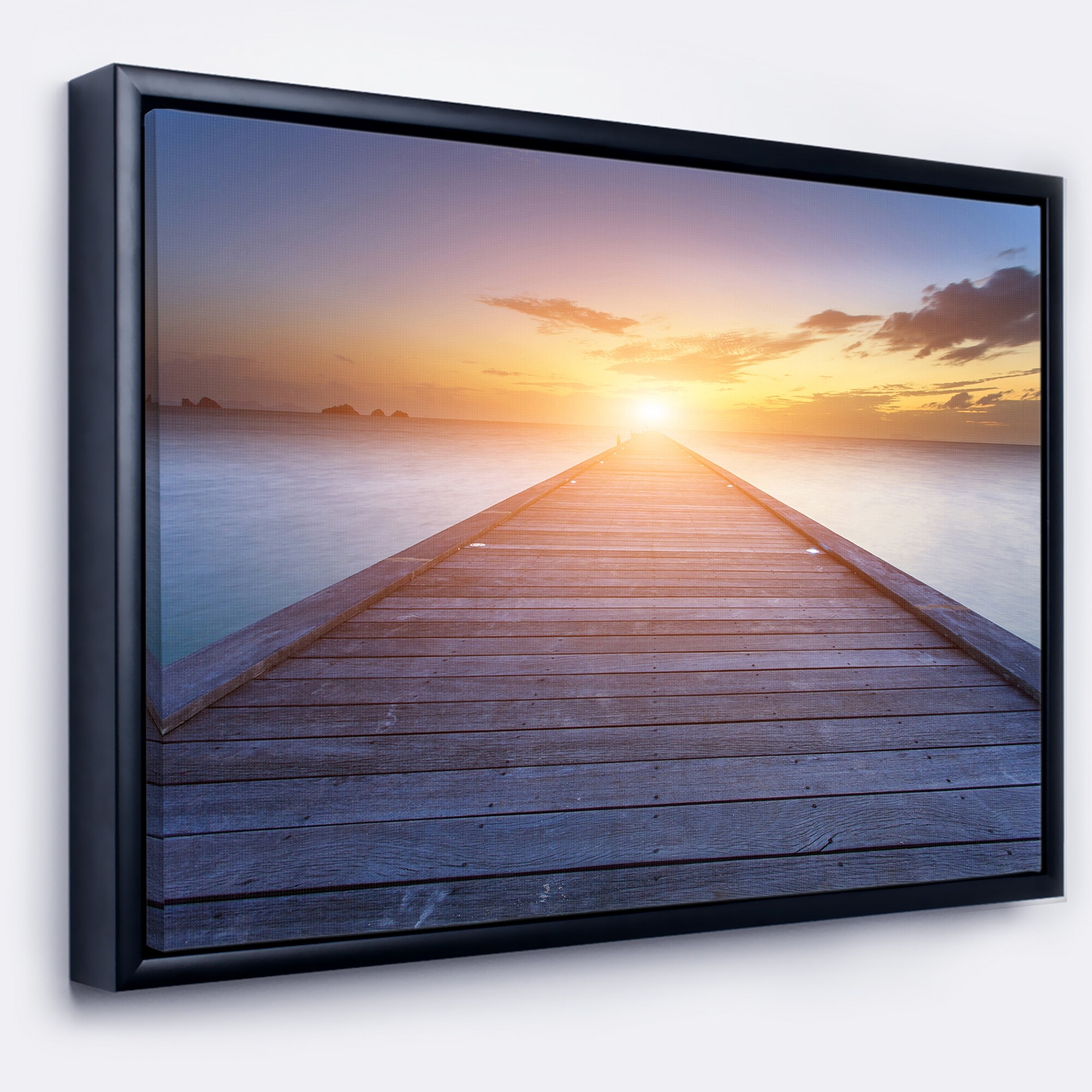 Designart "Wooden Pier to Bright Evening Sun" Sea Bridge Framed Canvas Art Print