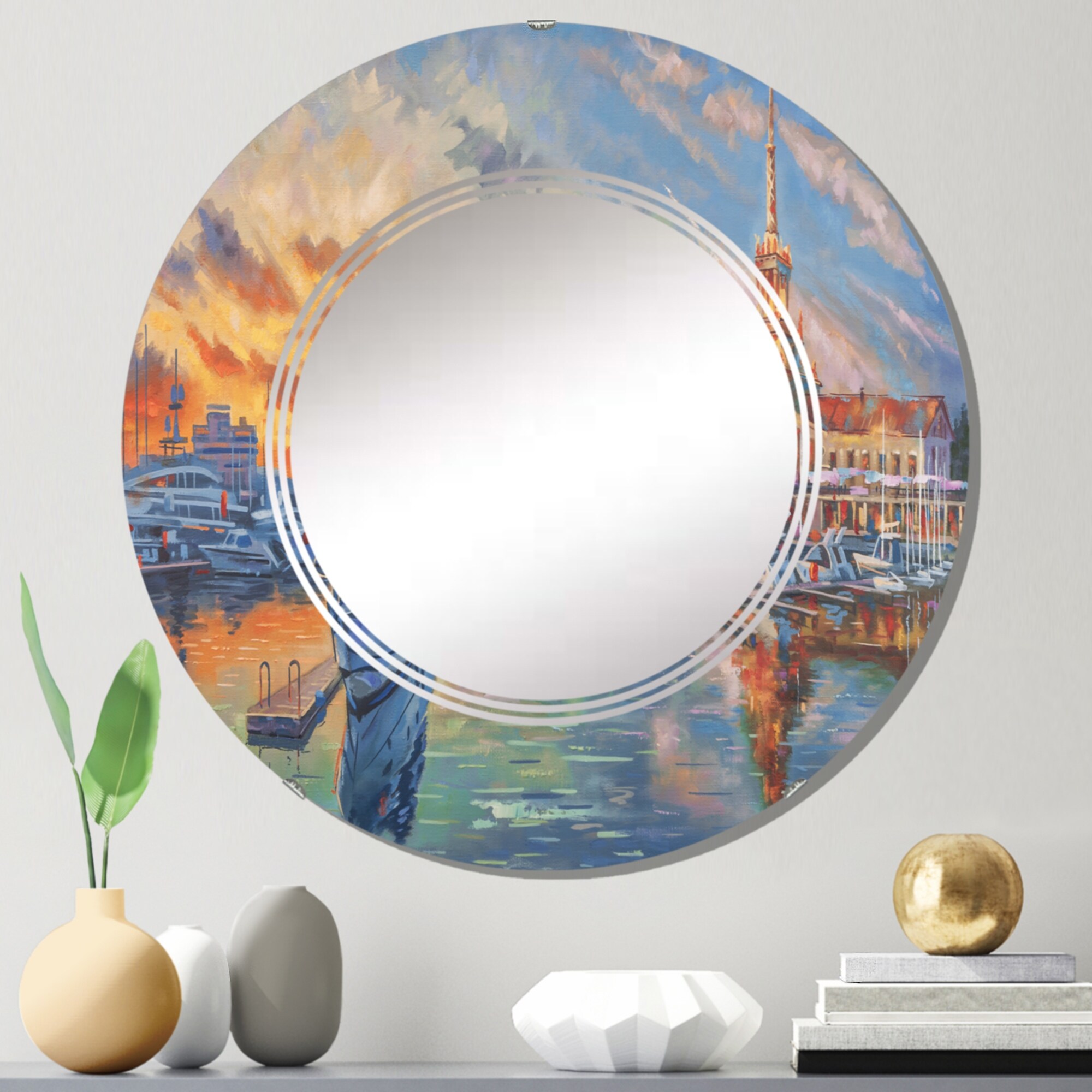 Designart 'Evening In the Seaport' Nautical & Coastal Printed Wall Mirror