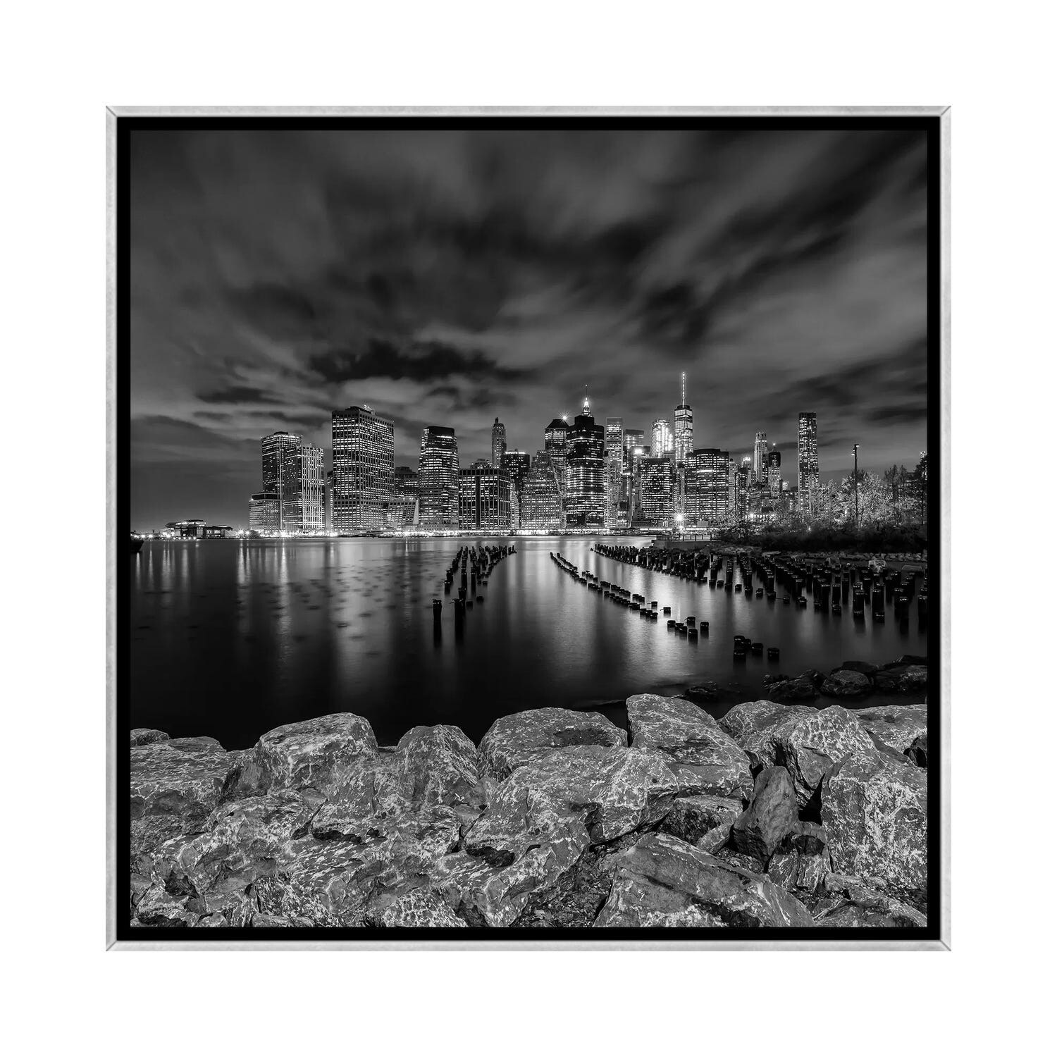 iCanvas "Manhattan Skyline Evening Atmosphere in New York City Monochrome" by Melanie Viola Framed