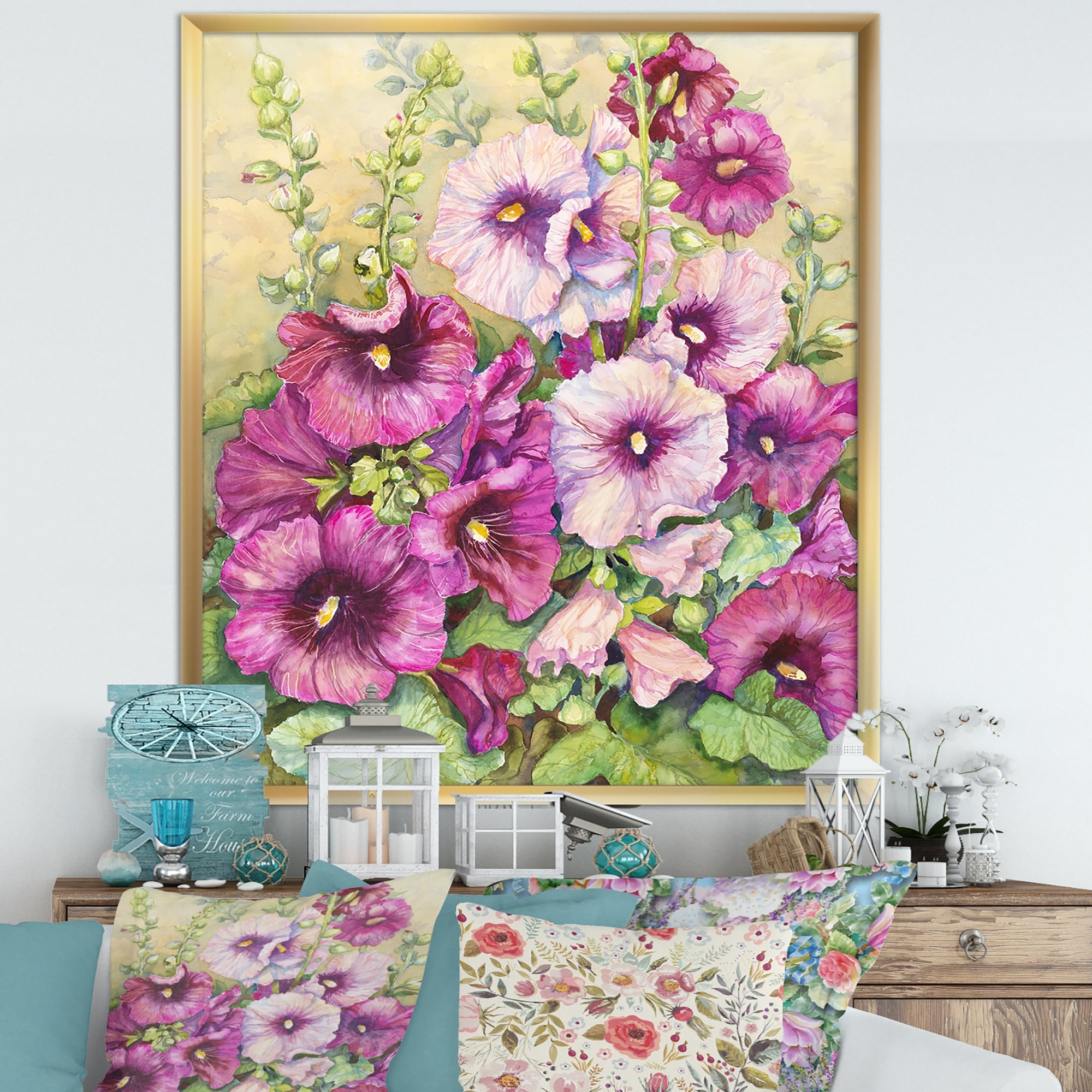 Designart "Hollyhocks In Evening Glow" Traditional Premium Framed Art Print