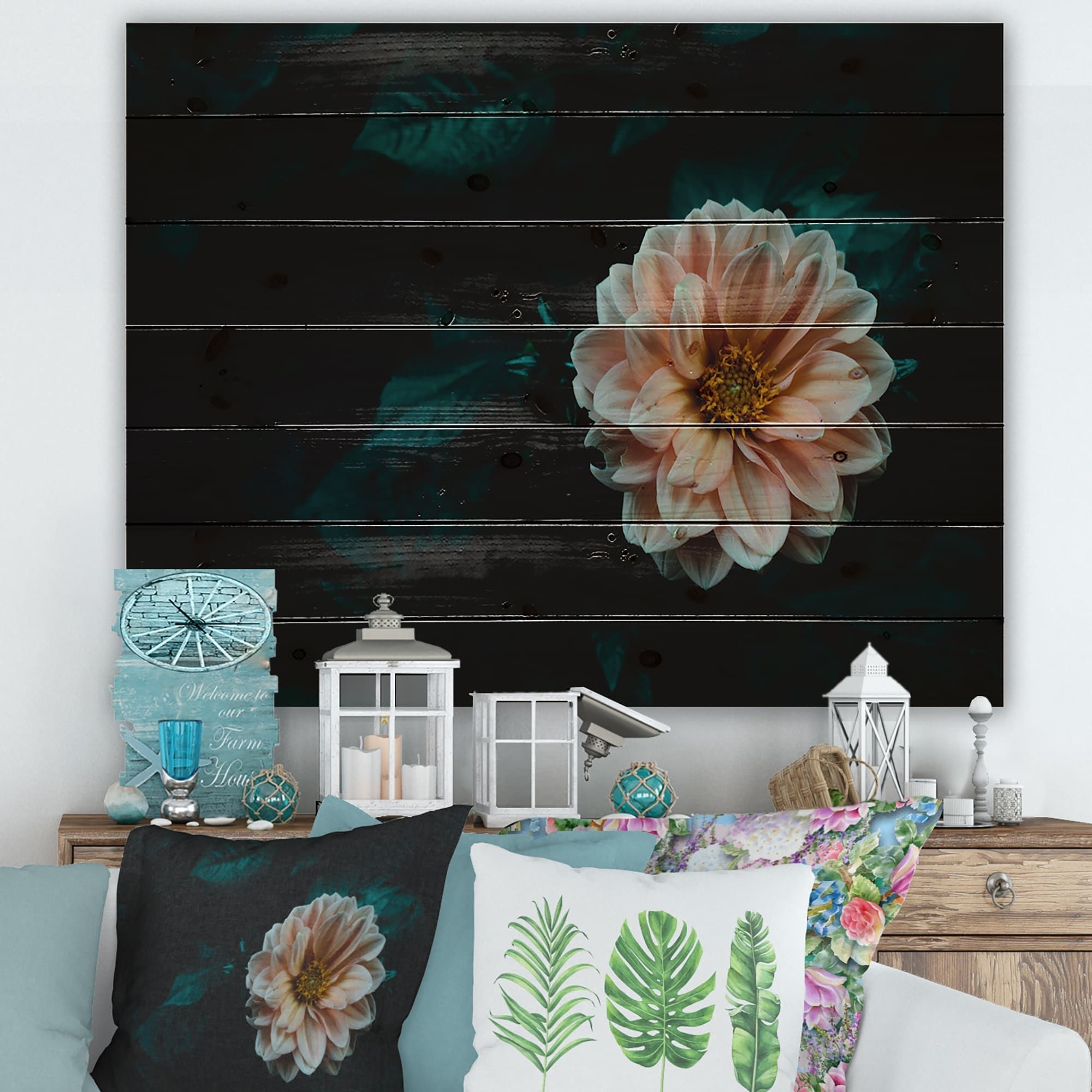 Designart 'Blooming Yellow Flower in Evening Garden' Traditional Print on Natural Pine Wood