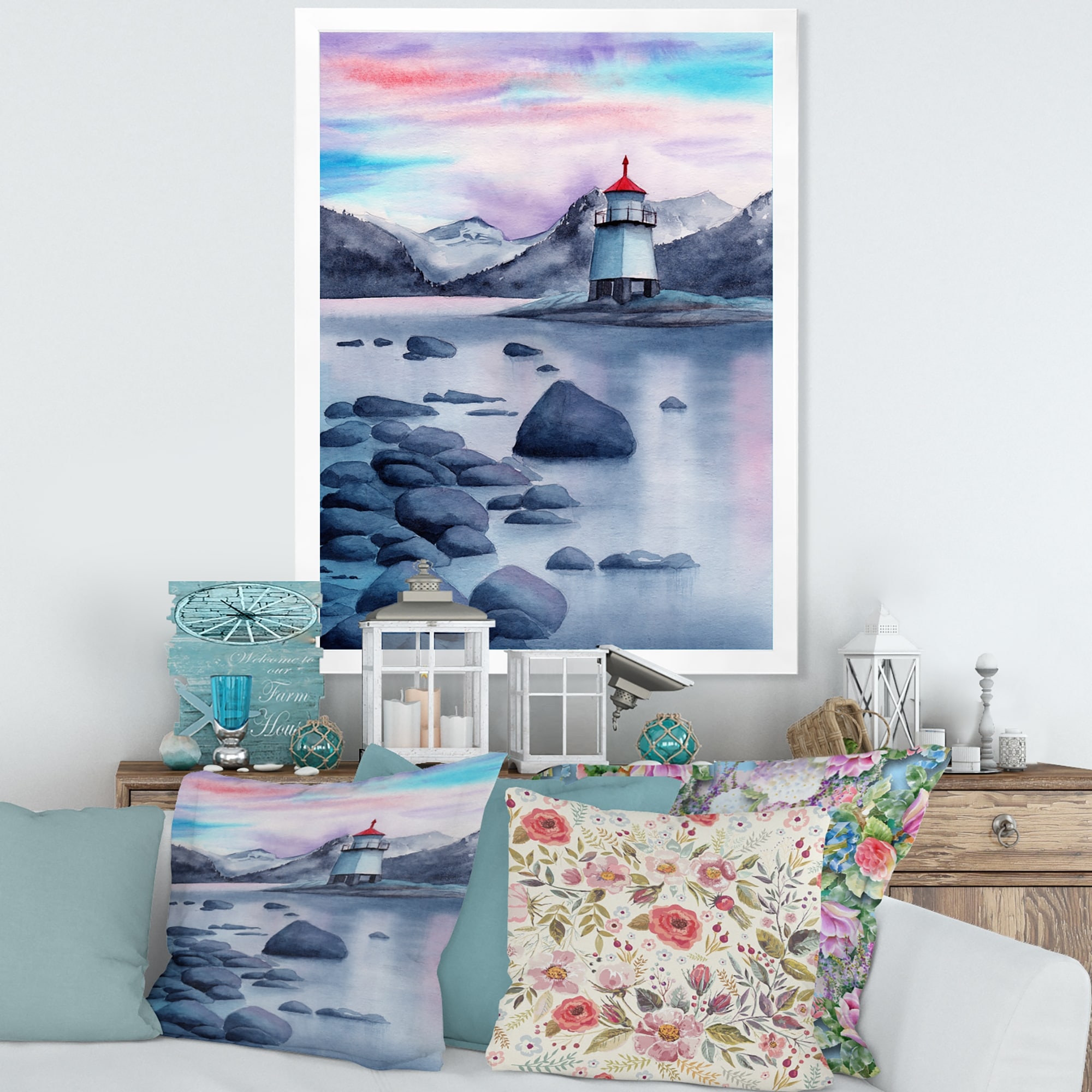 Designart "An Evening Landscape With A Lighthouse" Nautical & Coastal Framed Art Print