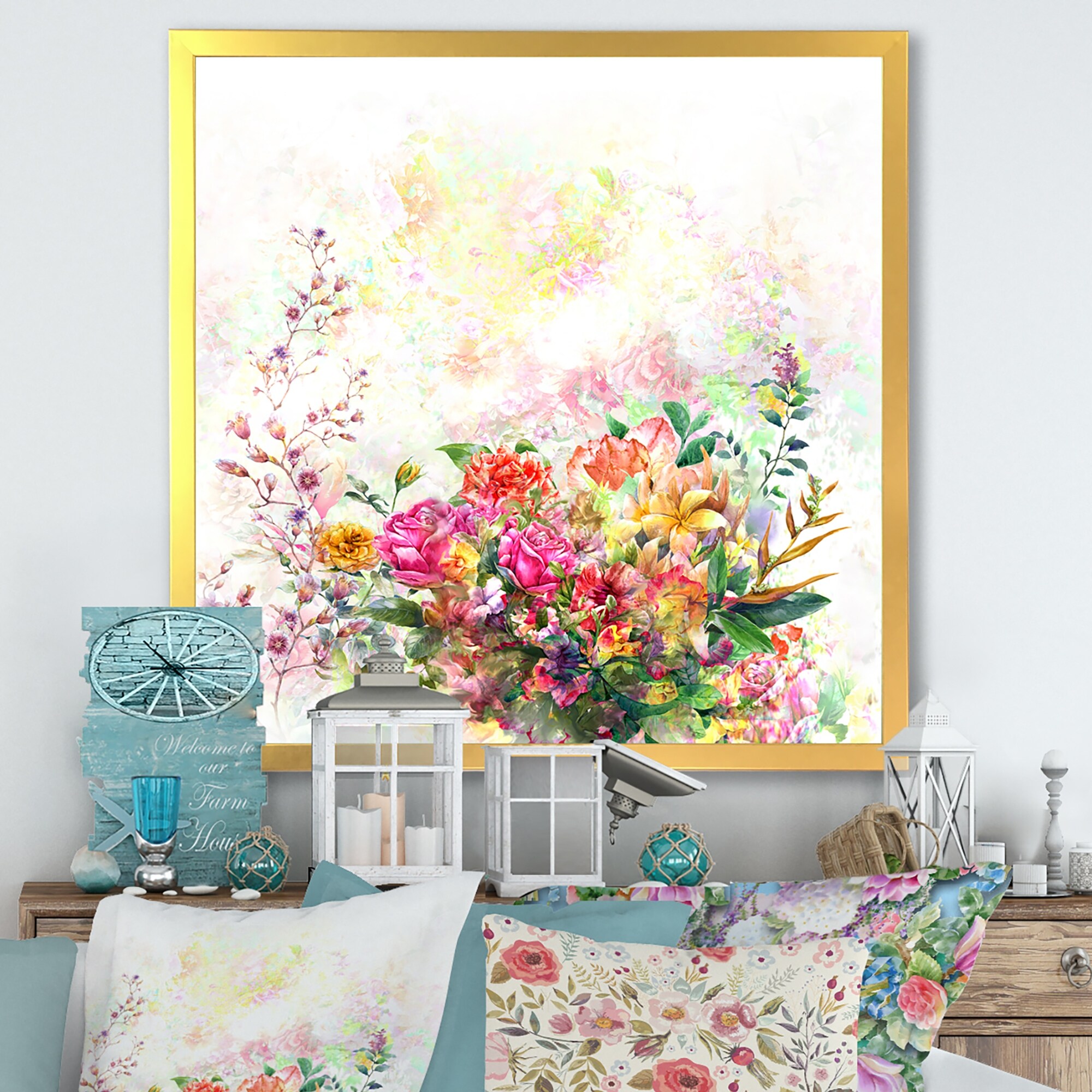 Designart "Elegant Botanical Summer Expression VII" Farmhouse Framed Art Print