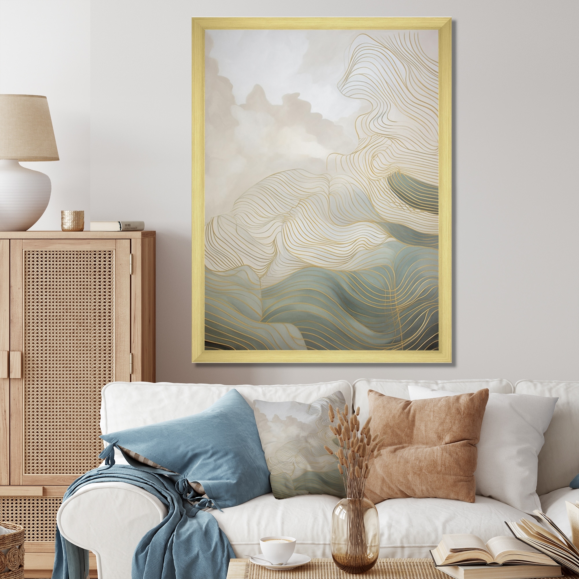 Designart "Gold And Grey Linear Expressions Iii" Minimalism Line Art Framed Wall Art for Living Room