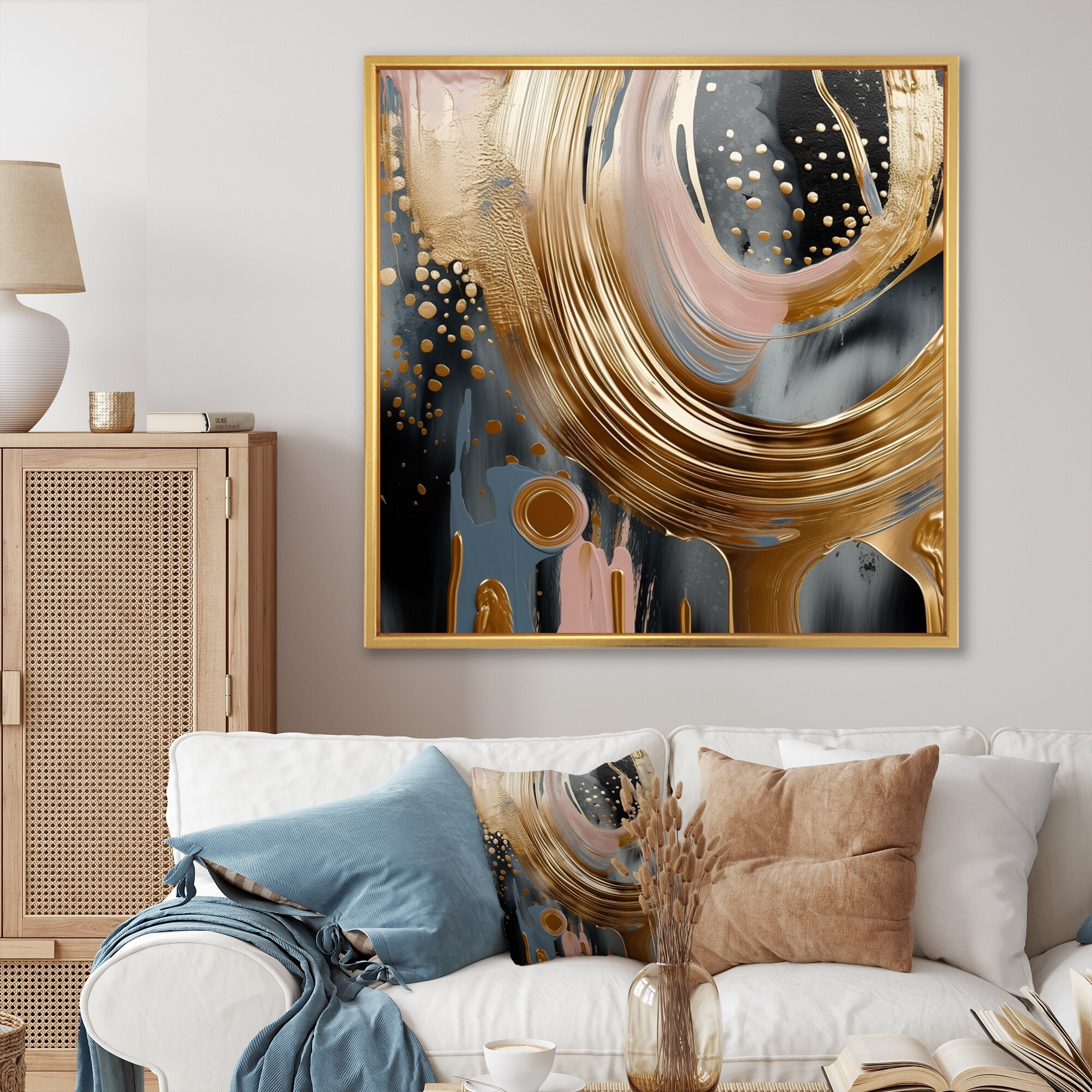 Designart "Glam Gold And Black Expression IV" Modern Framed Canvas Art Print