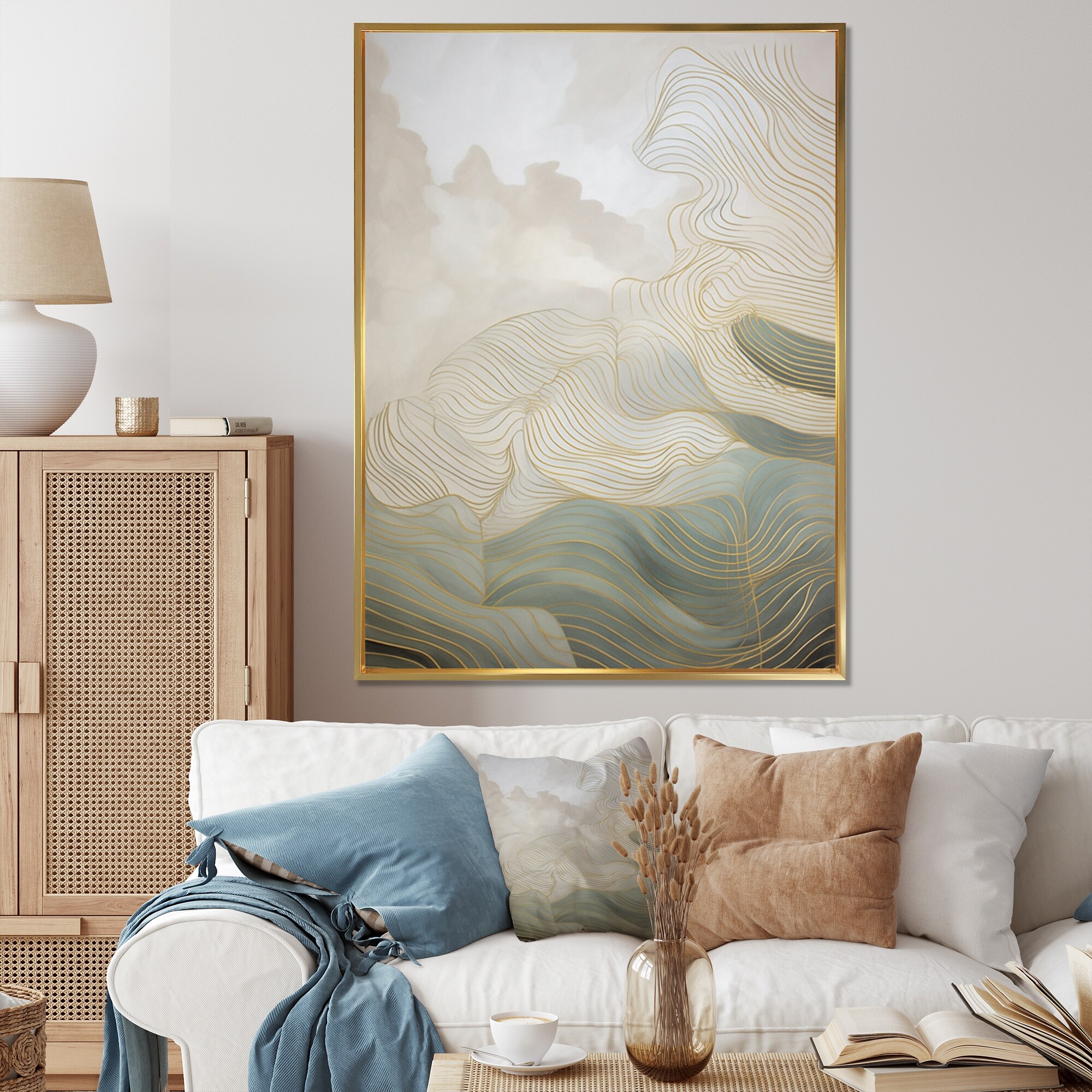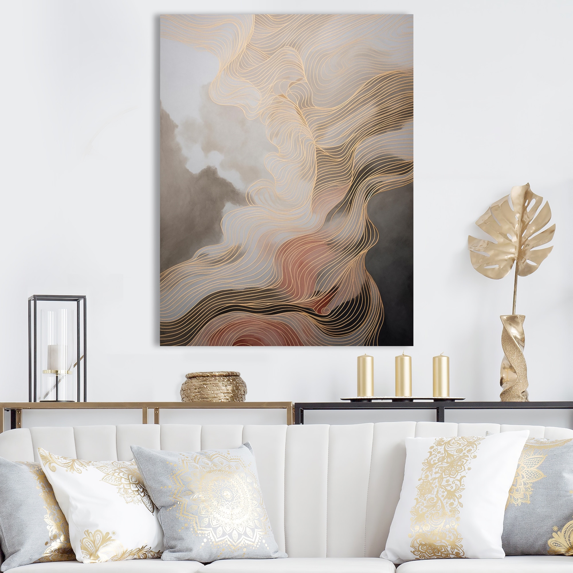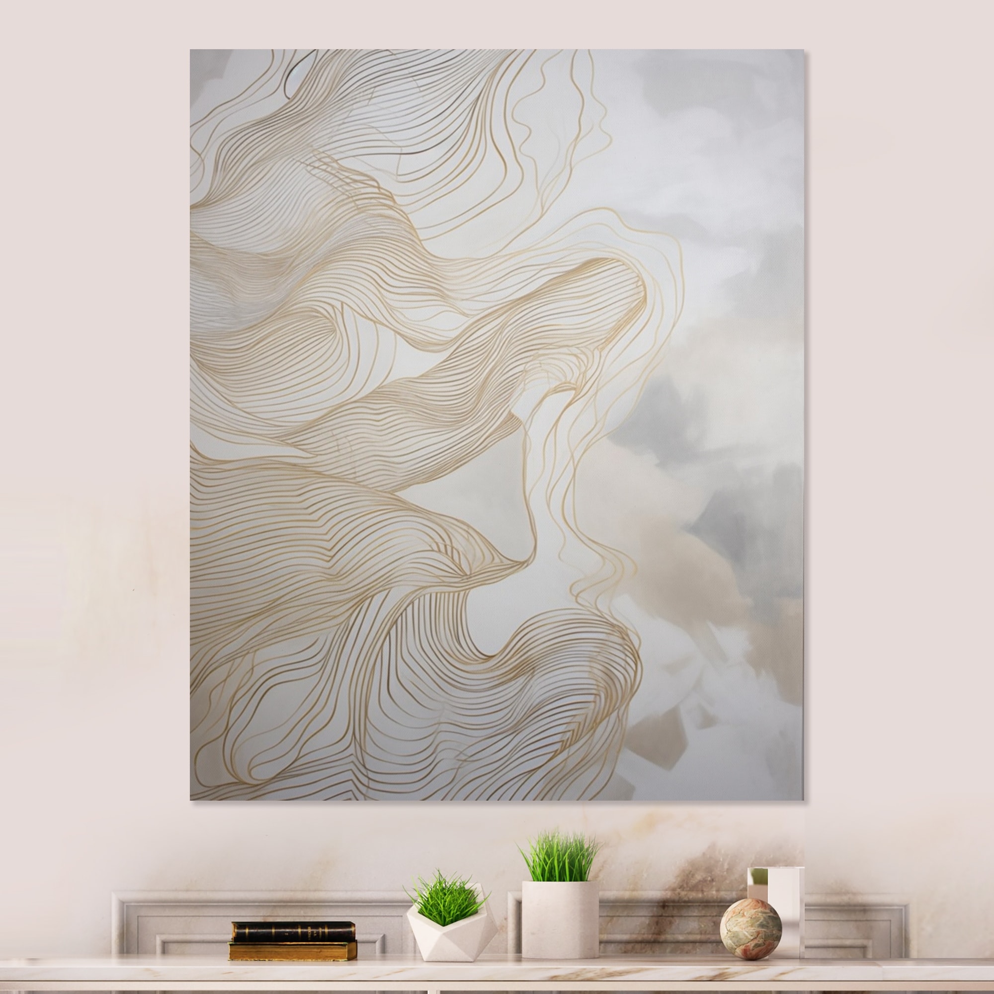 Designart "Gold And Grey Linear Expressions I" Minimalism Line Art Wall Art for Living Room