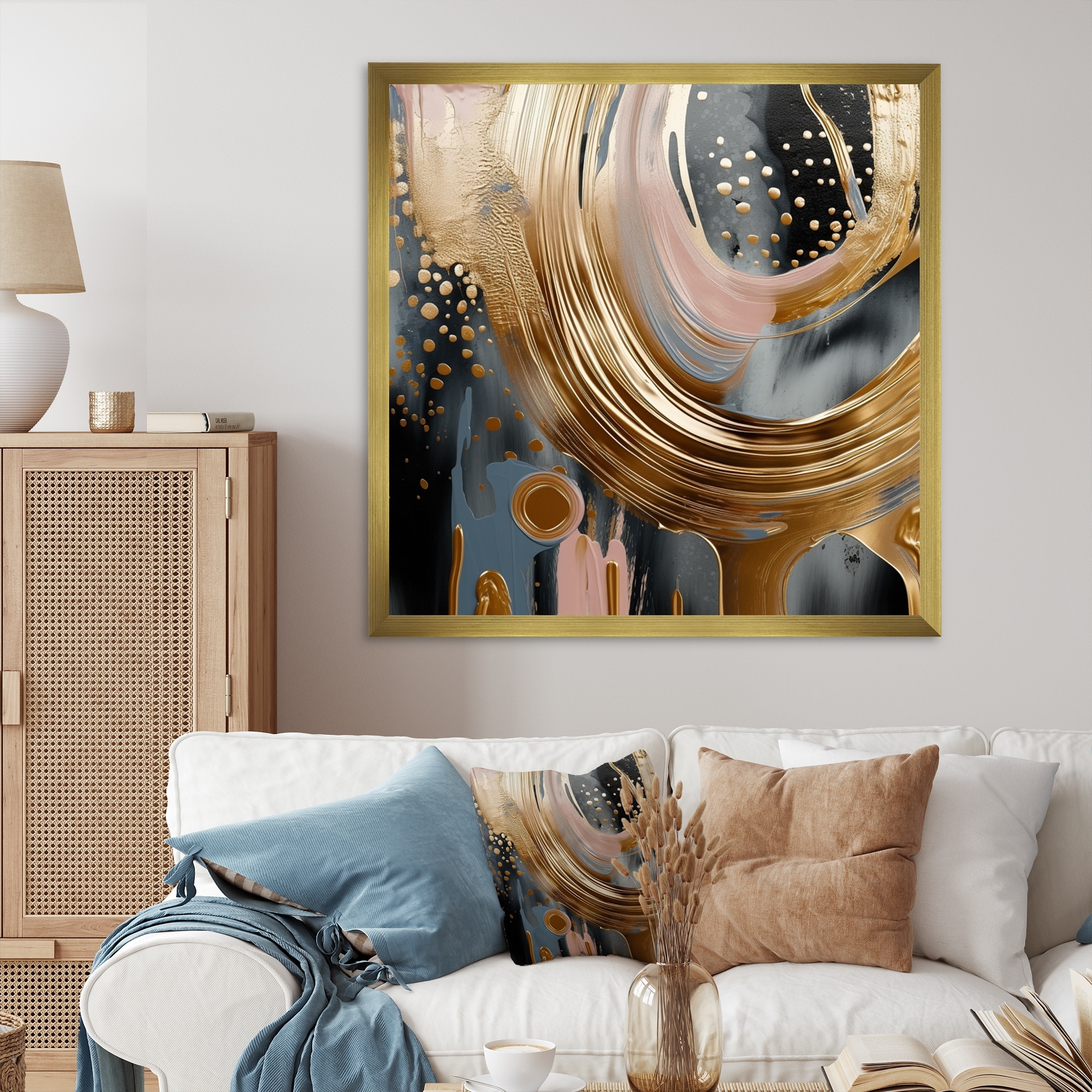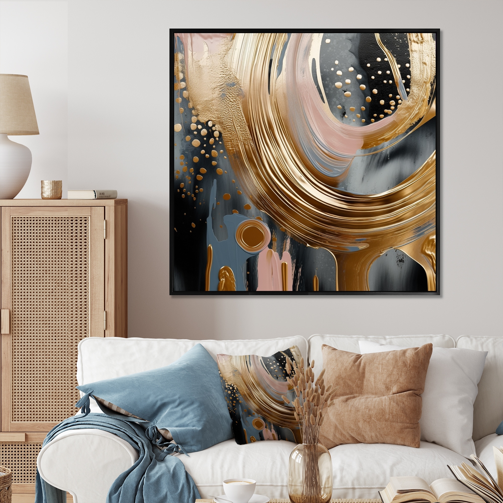 Designart "Glam Gold And Black Expression II" Modern Framed Art Print