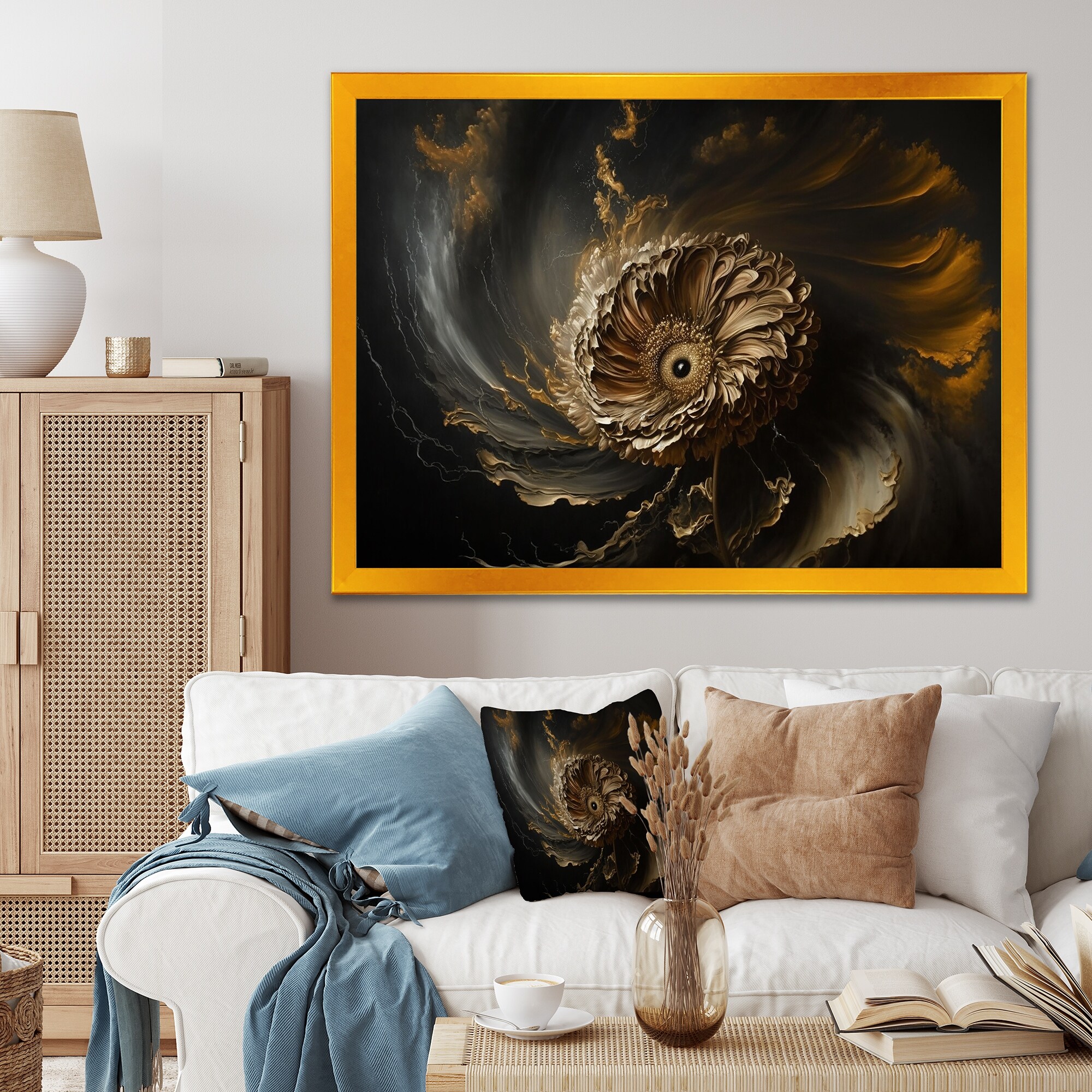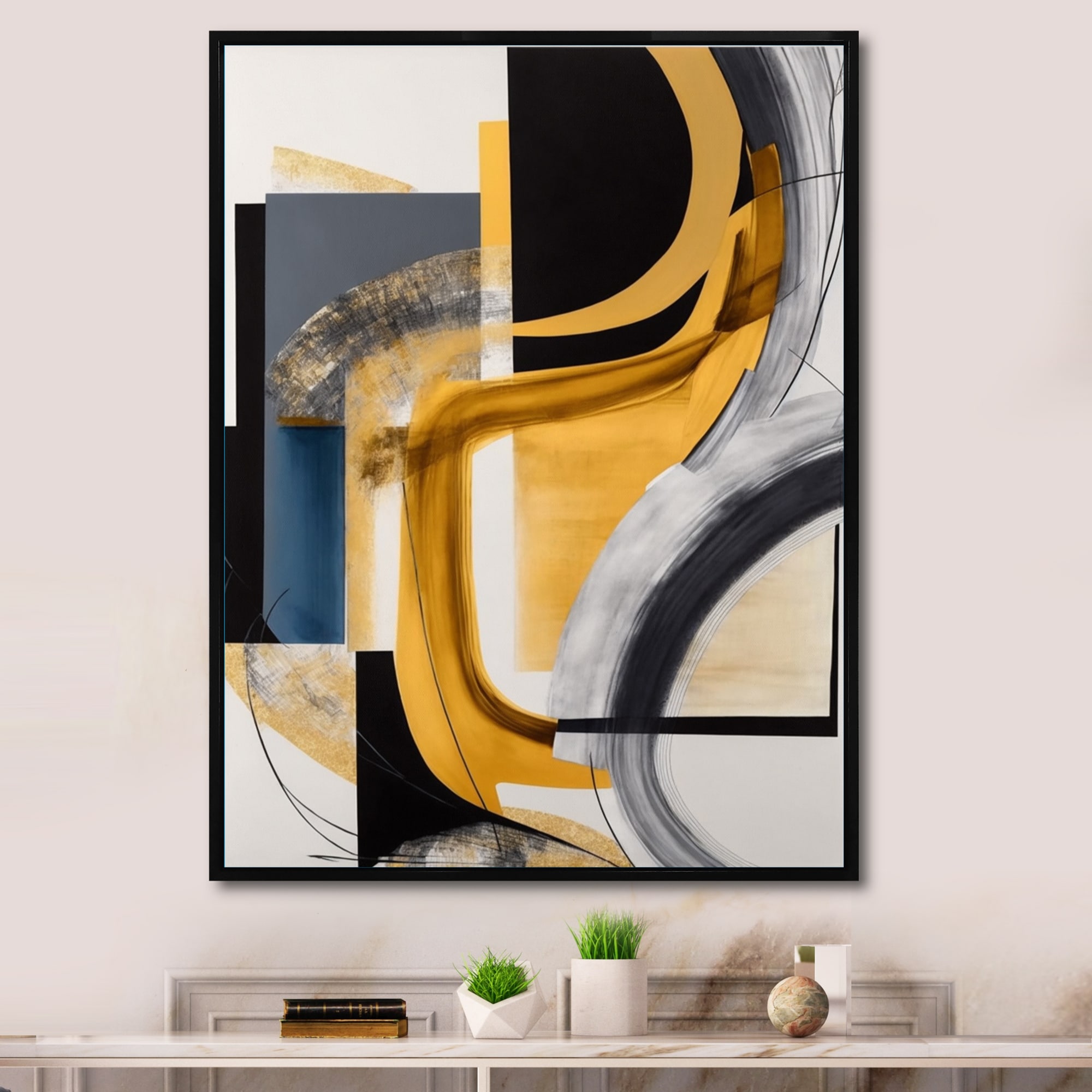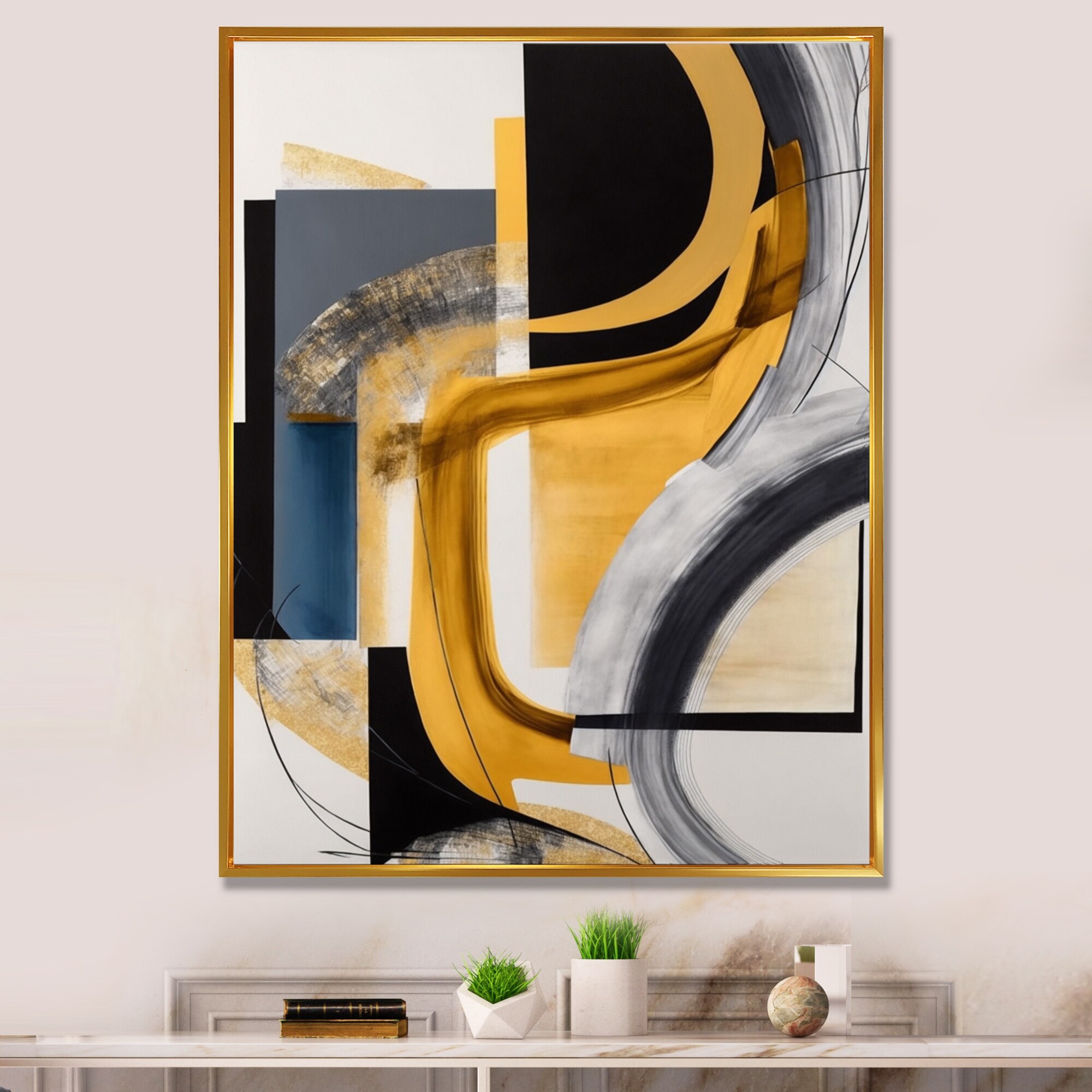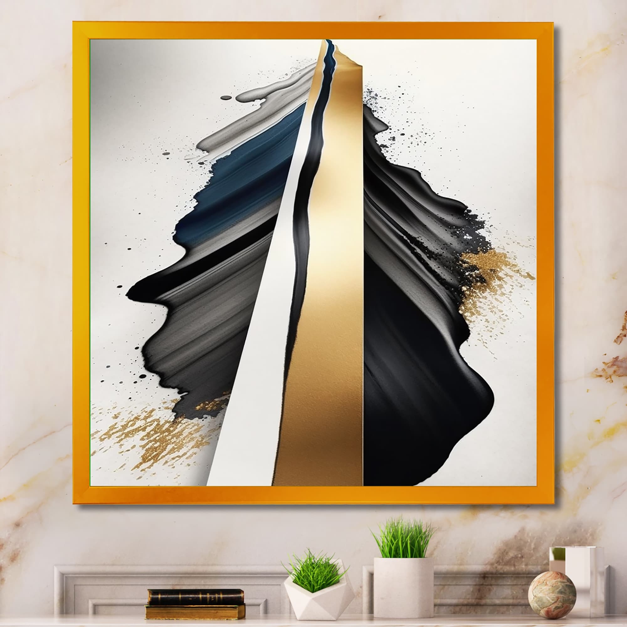 Designart "Black, White And Gold Expression II" Modern Framed Canvas Art Print