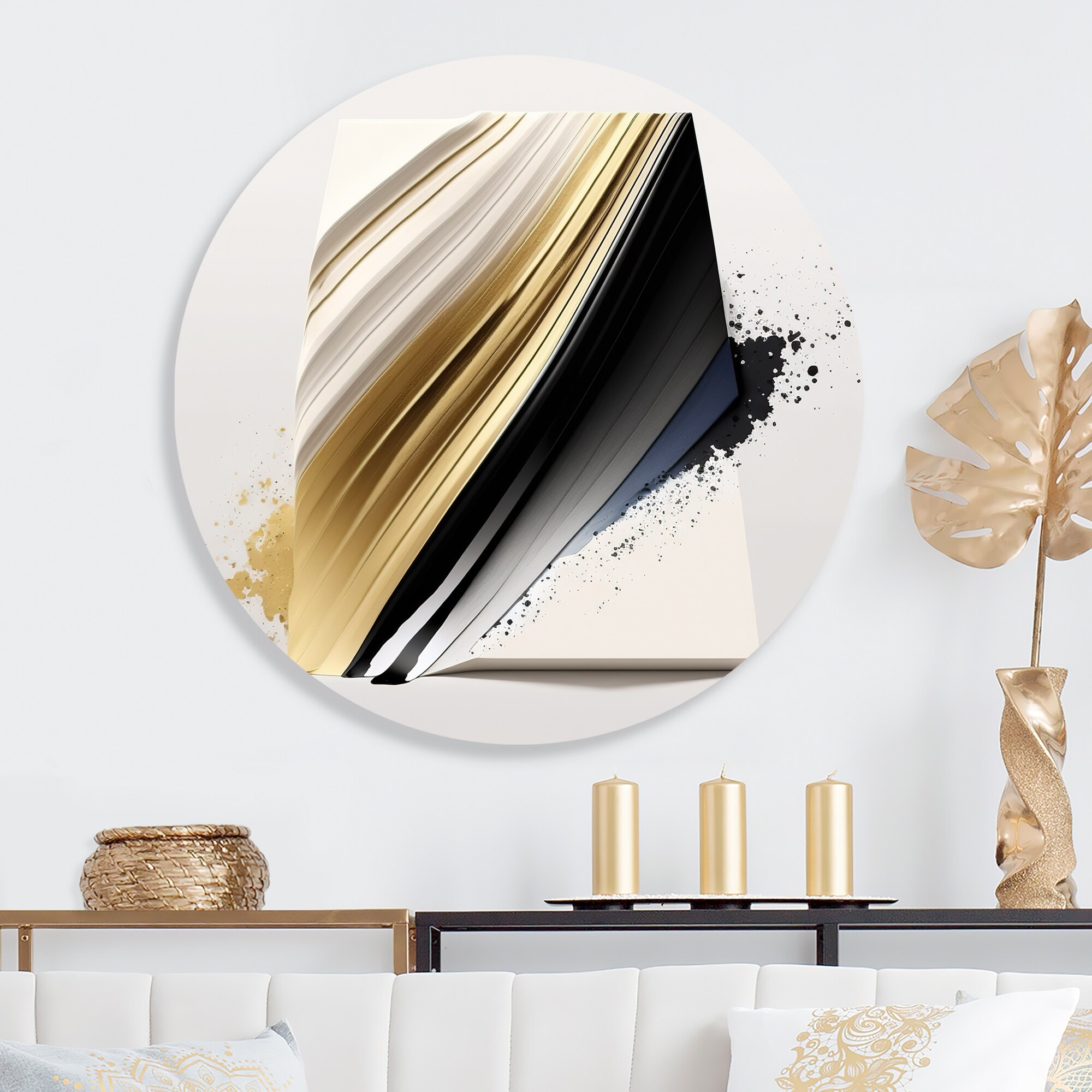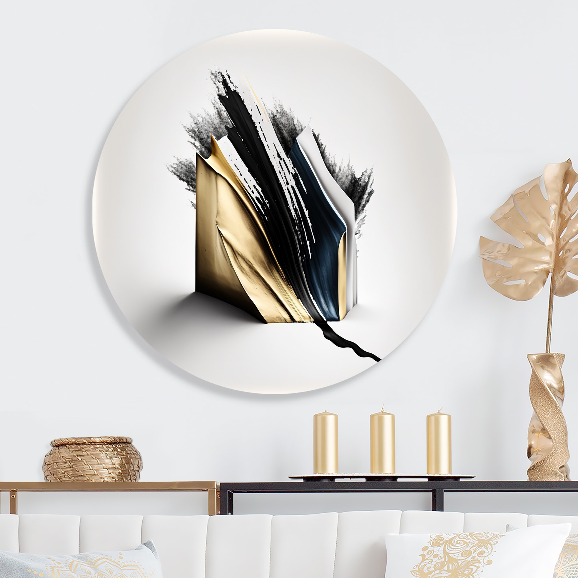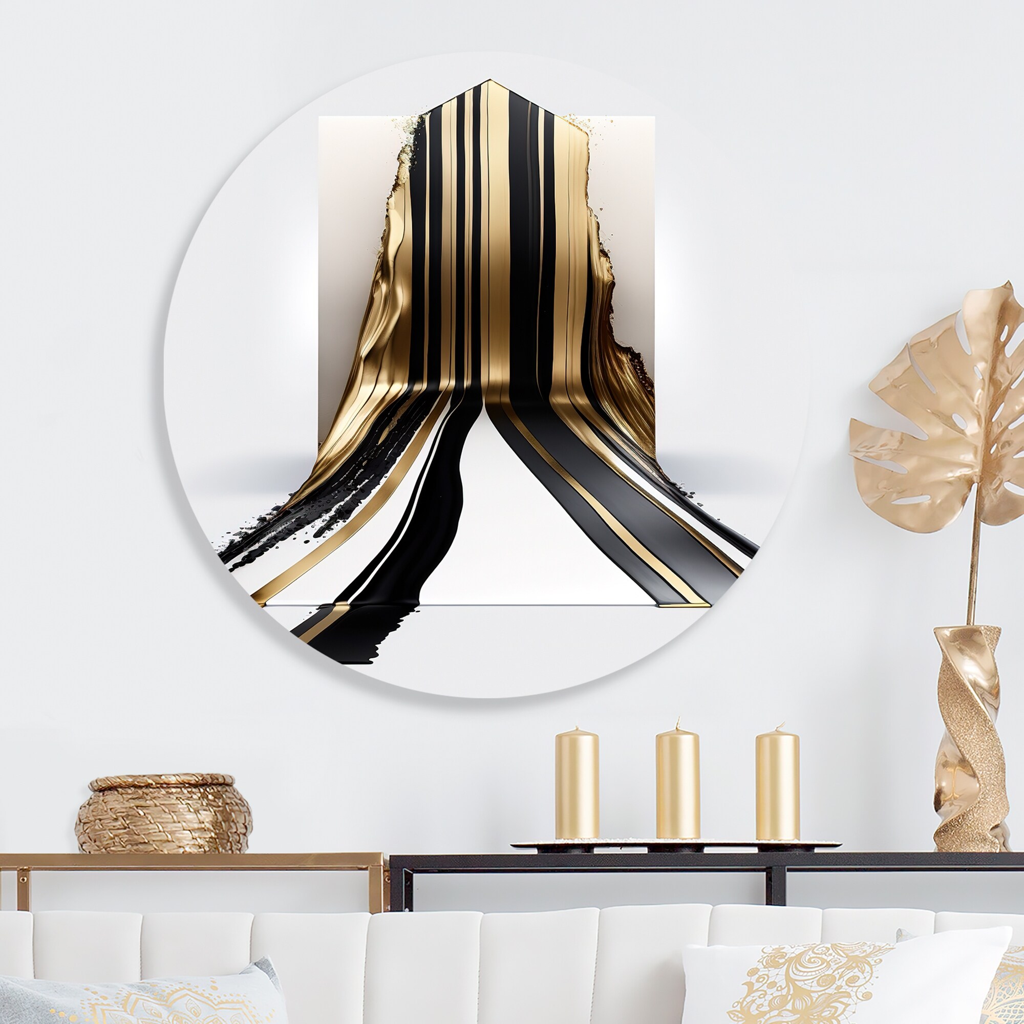 Designart 'Black And Gold Cubic Expression IV' Modern Metal Round Wall Art