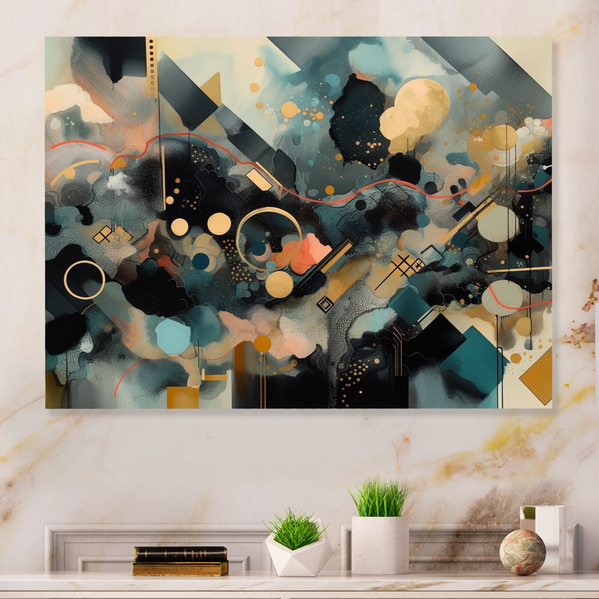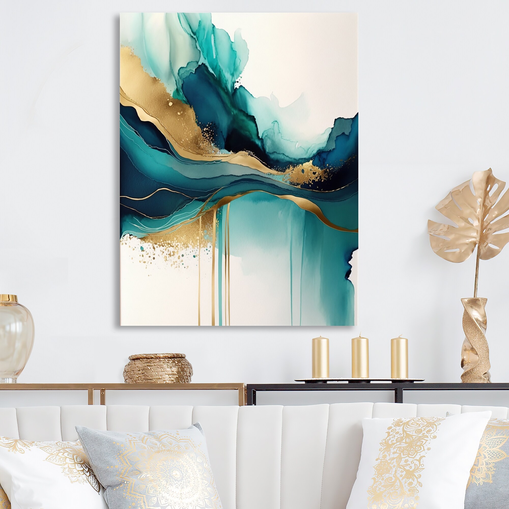 Designart 'Teal And Gold Abstract Expression II' Abstract Liquid Ink Metal Wall Art
