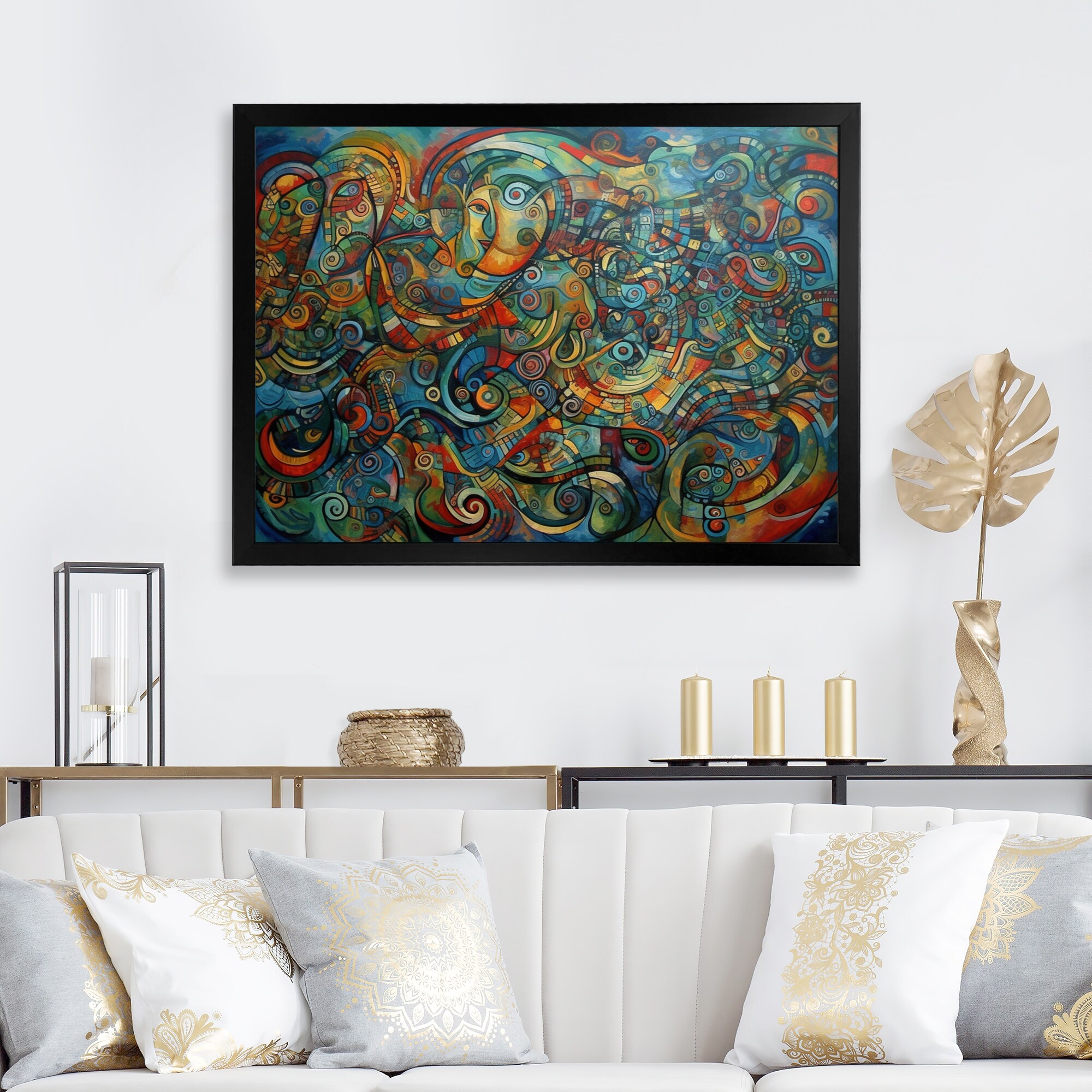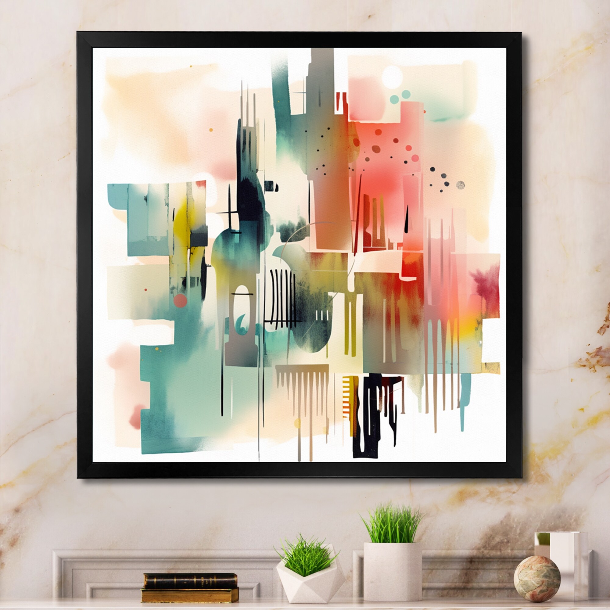 Designart "Abstracted Vibrant Expressions I" Modern Geometric Framed Wall Decor