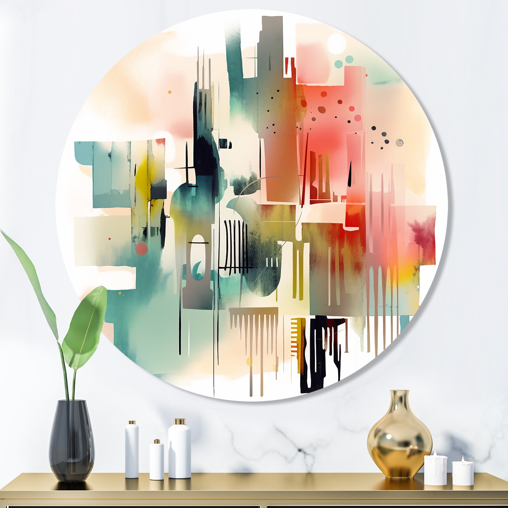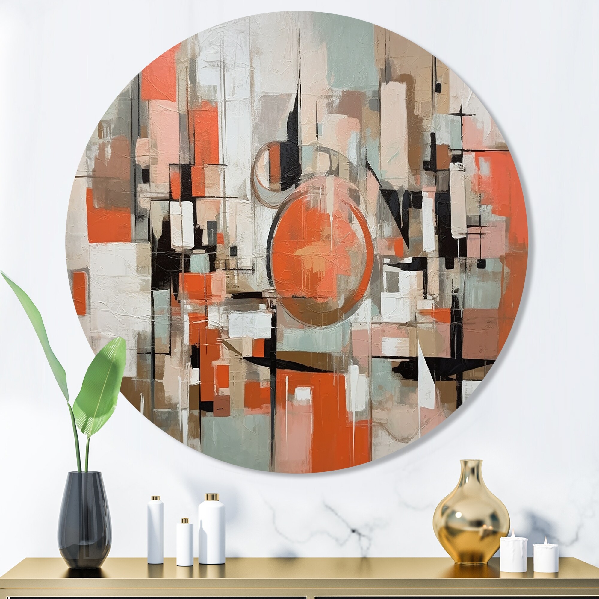 Designart "Modernist Expressions VI" Modern Midcentury Metal Round Wall Art