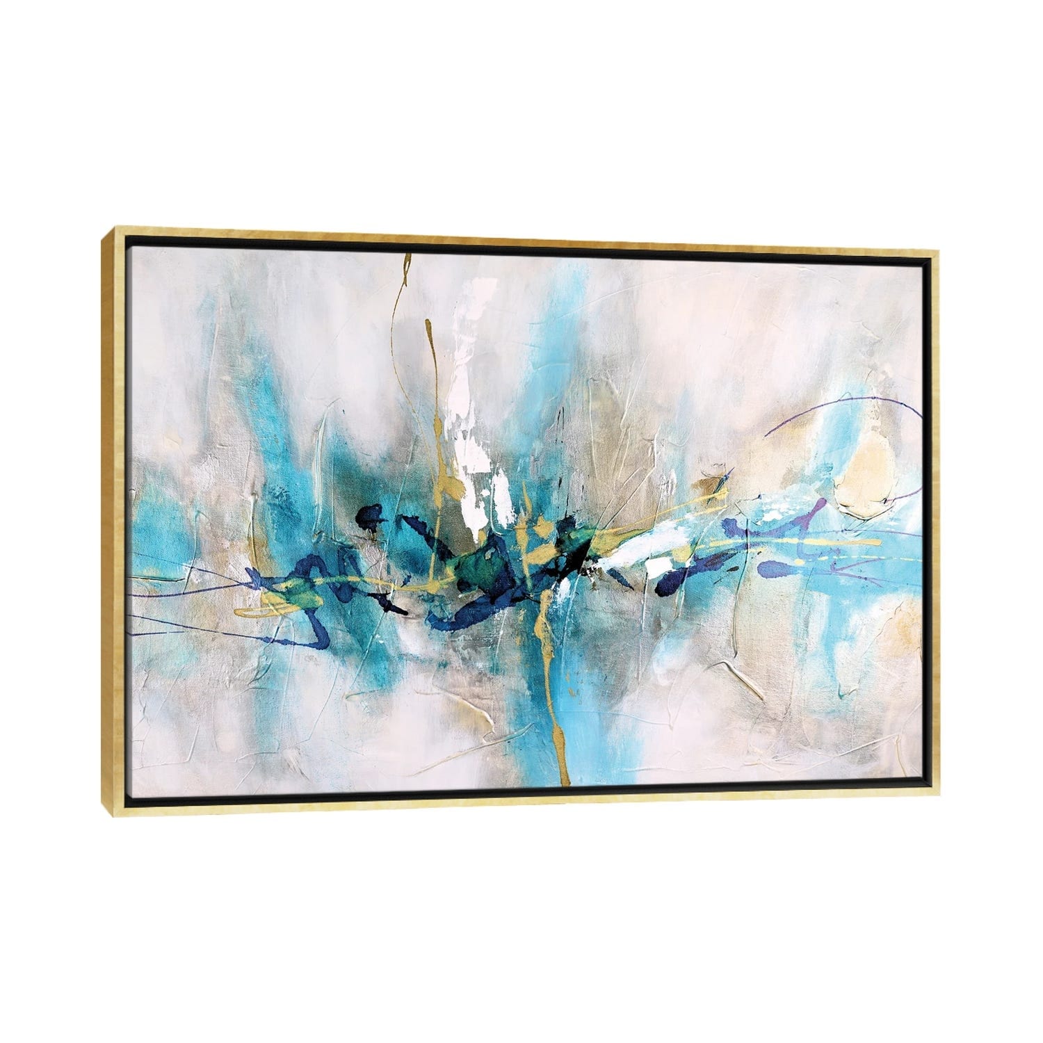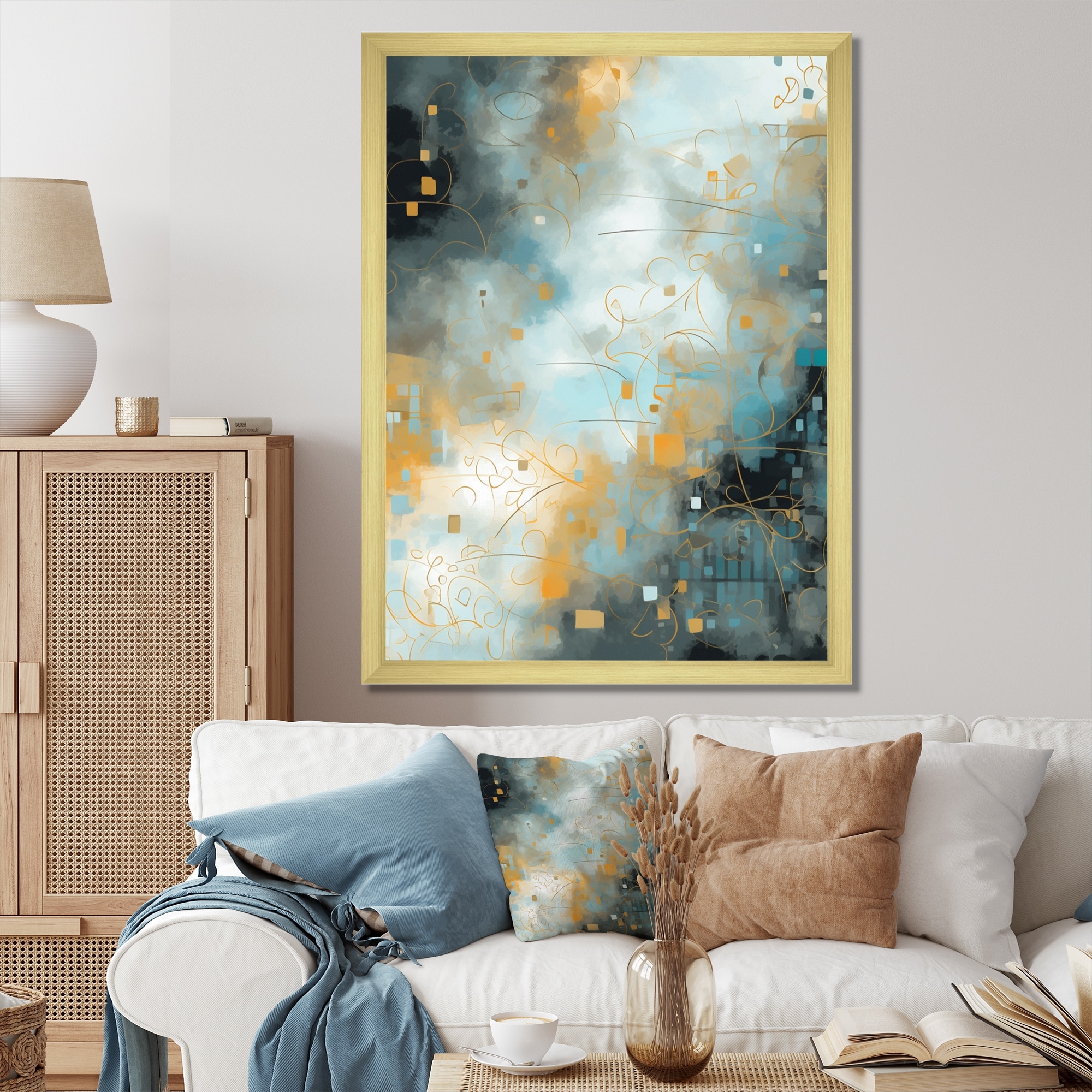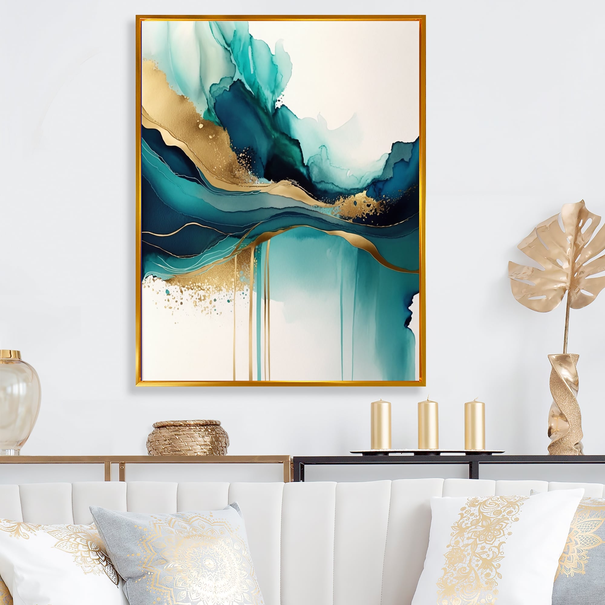 Designart "Teal And Gold Abstract Expression II" Modern Framed Canvas Art Print