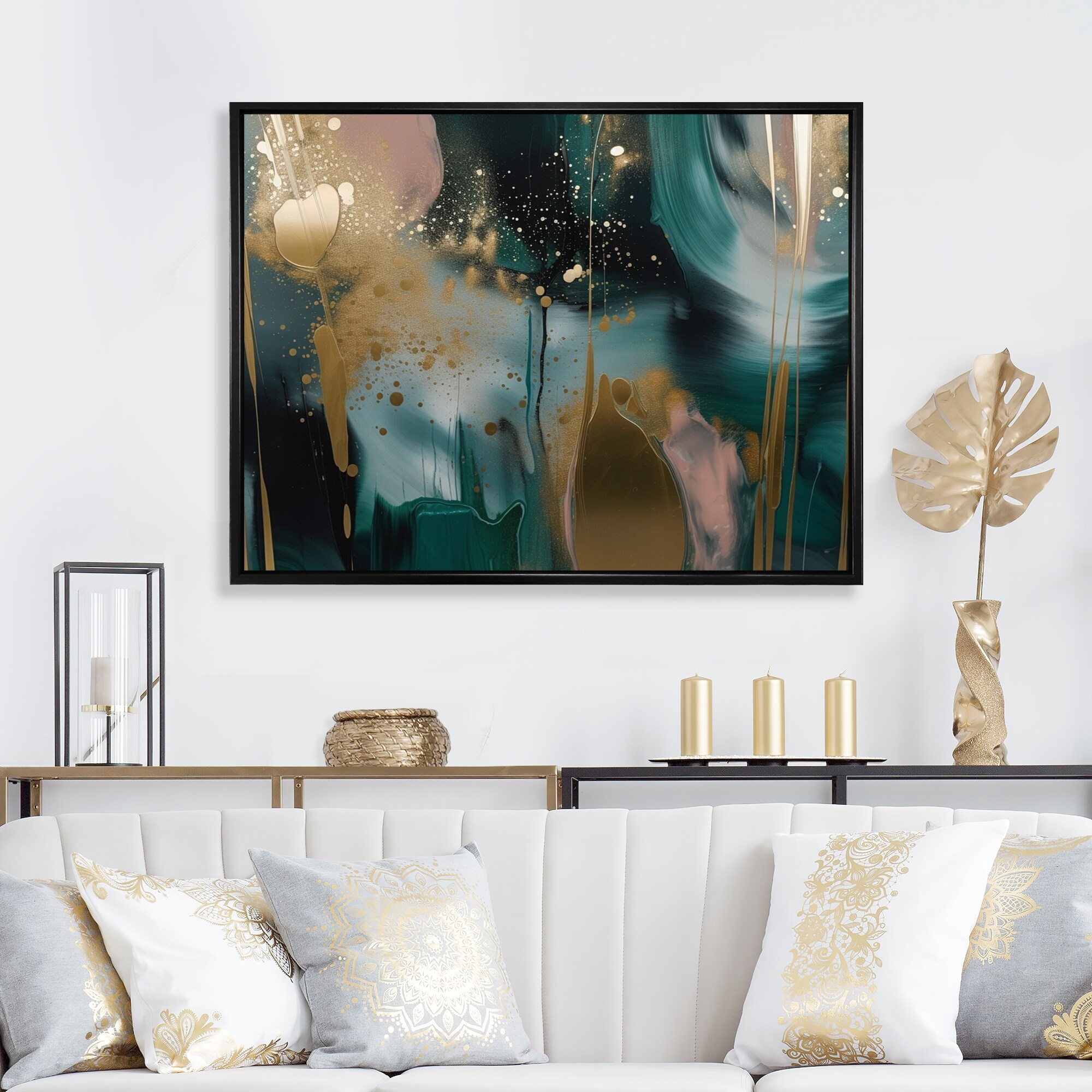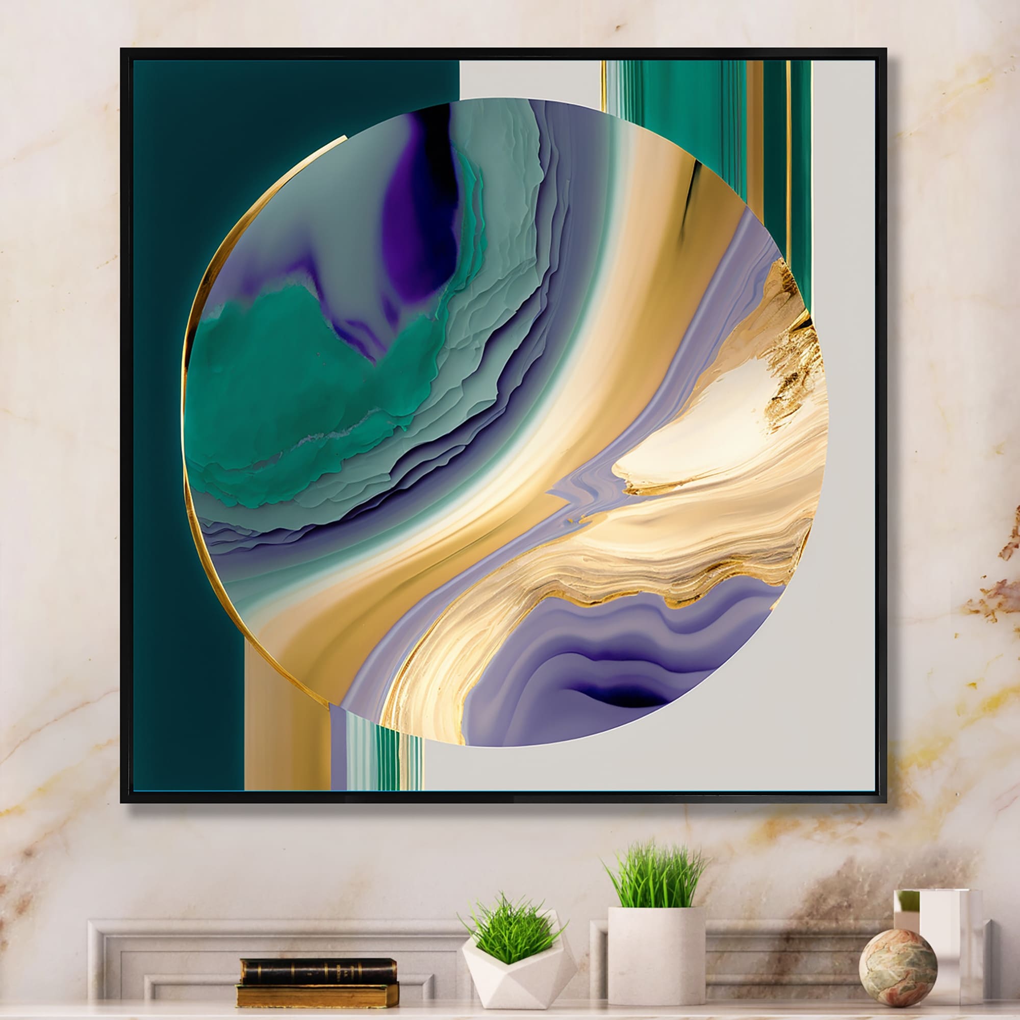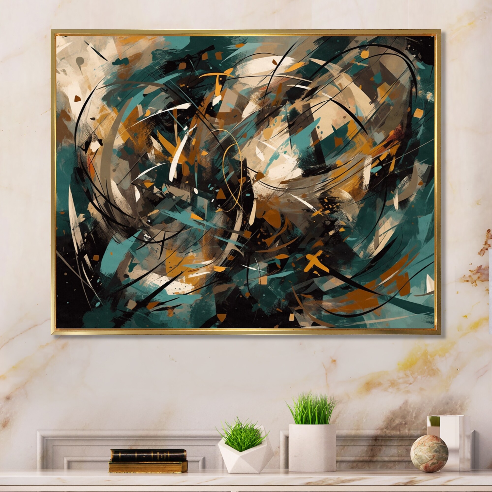 Designart "Gold And Green Marble Expression" Abstract Marble Framed Wall Art Prints