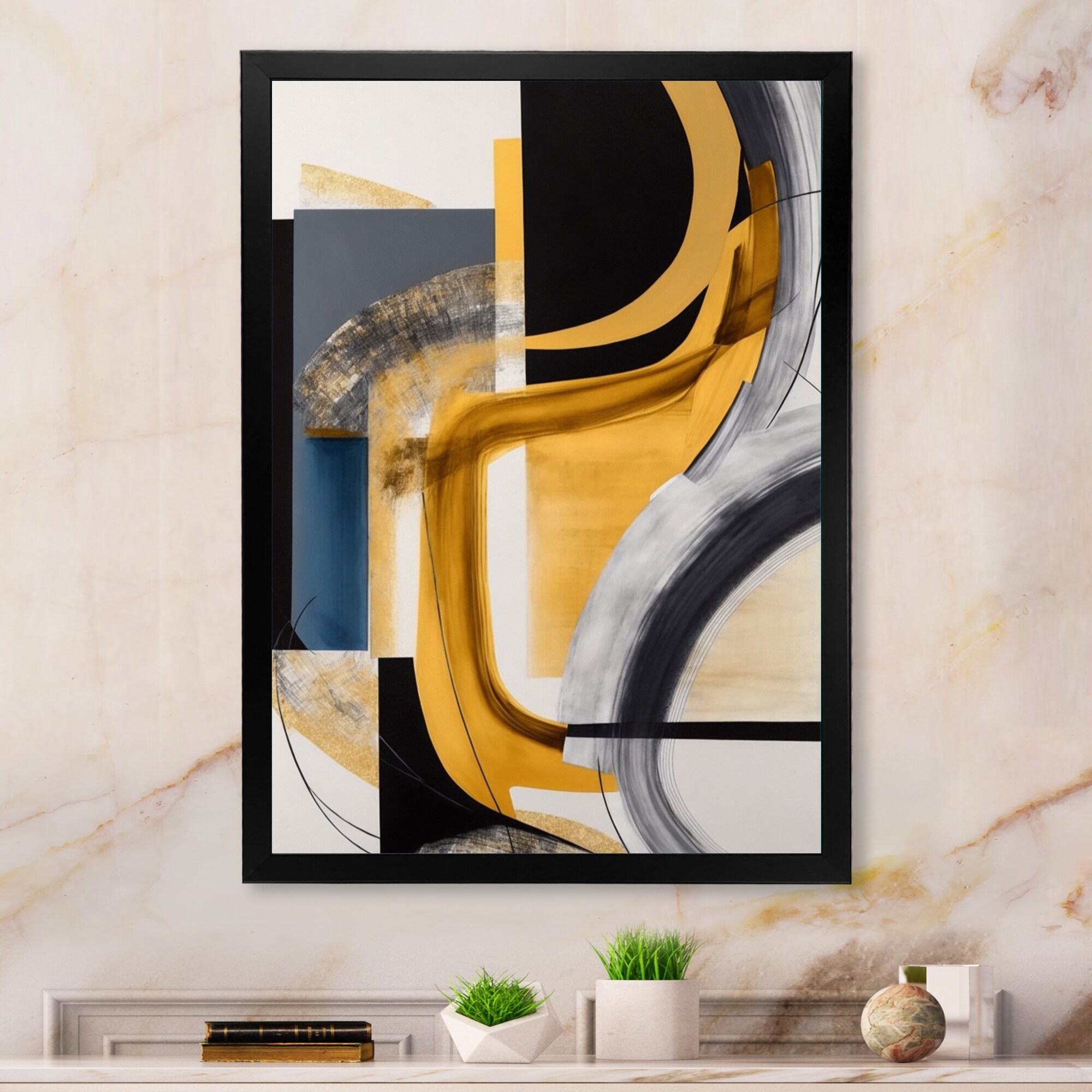 Designart "Black, White And Gold Expression IV" Modern Framed Art Print