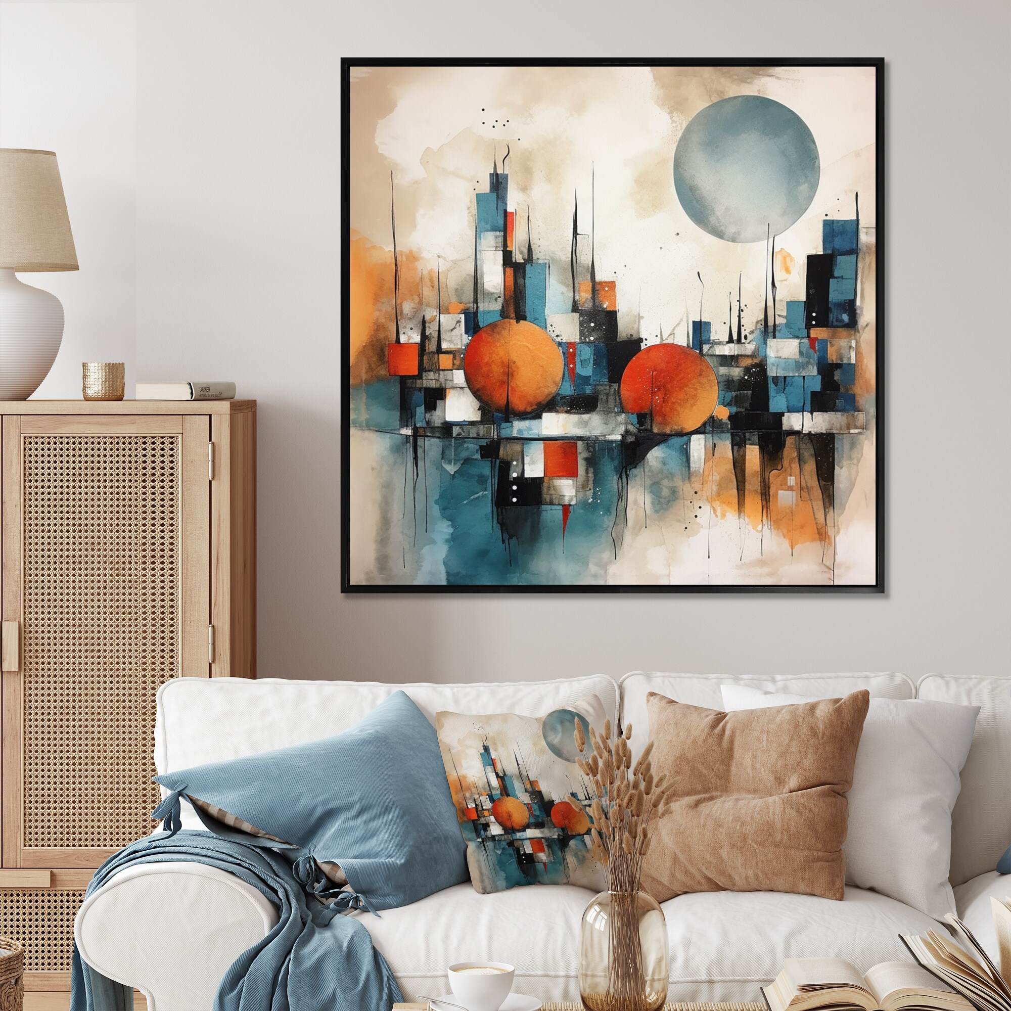 Designart "Orange And Blue Artistic Expressions I" Modern Geometric Framed Wall Art Prints