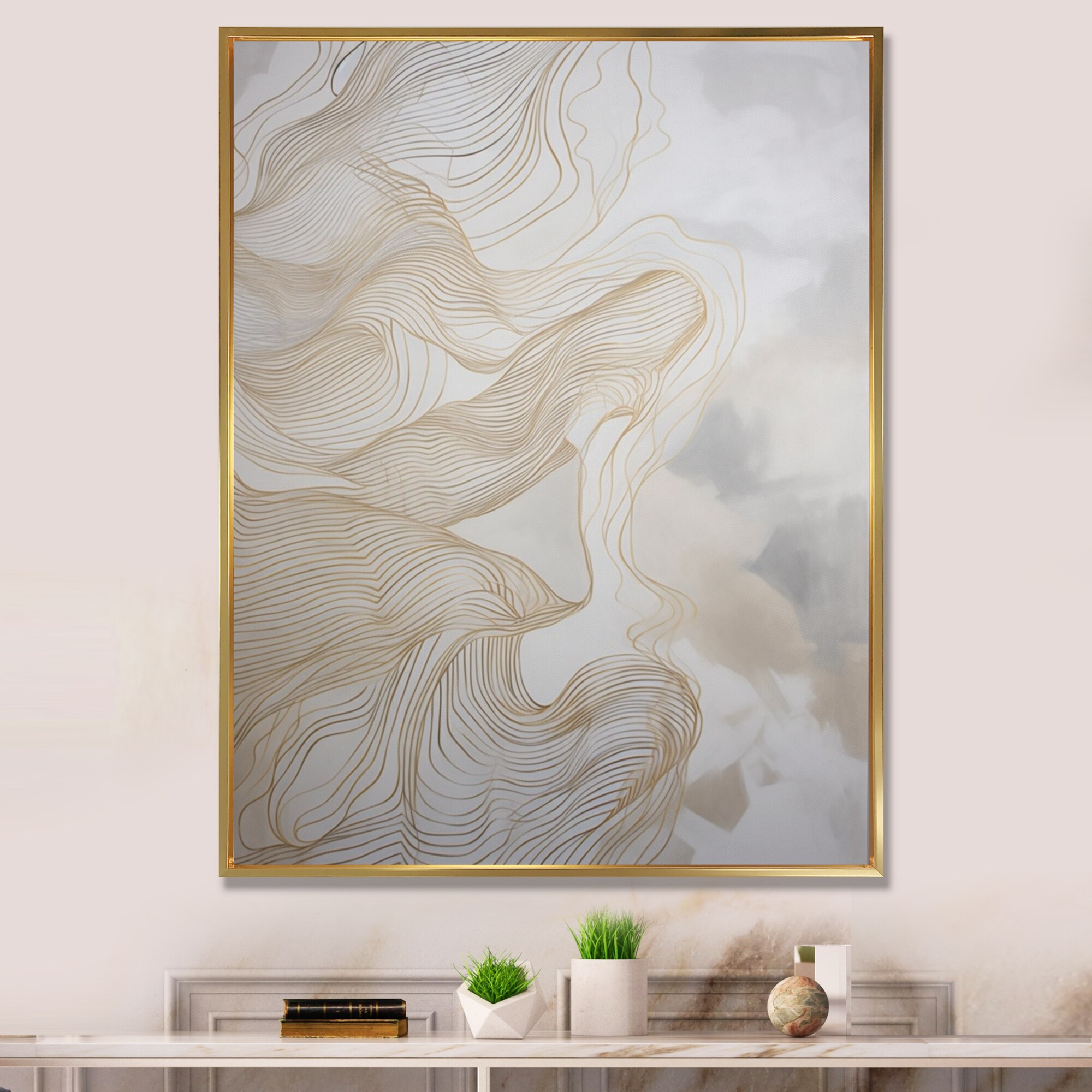Designart "Gold And Grey Linear Expressions Ii" Minimalism Line Art Framed Canvas Print