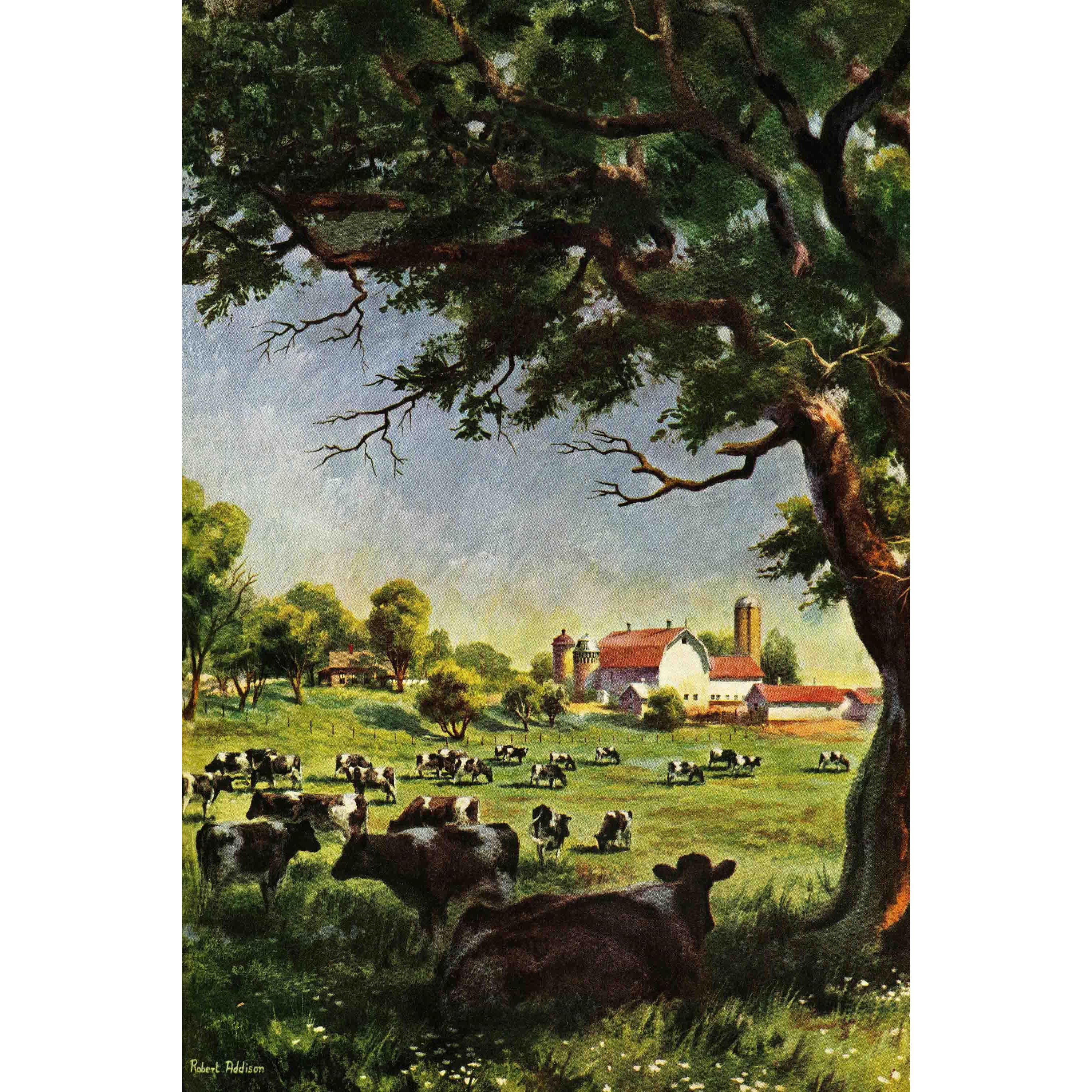 Marmont Hill - Handmade Cattle Farm Painting Print on Canvas