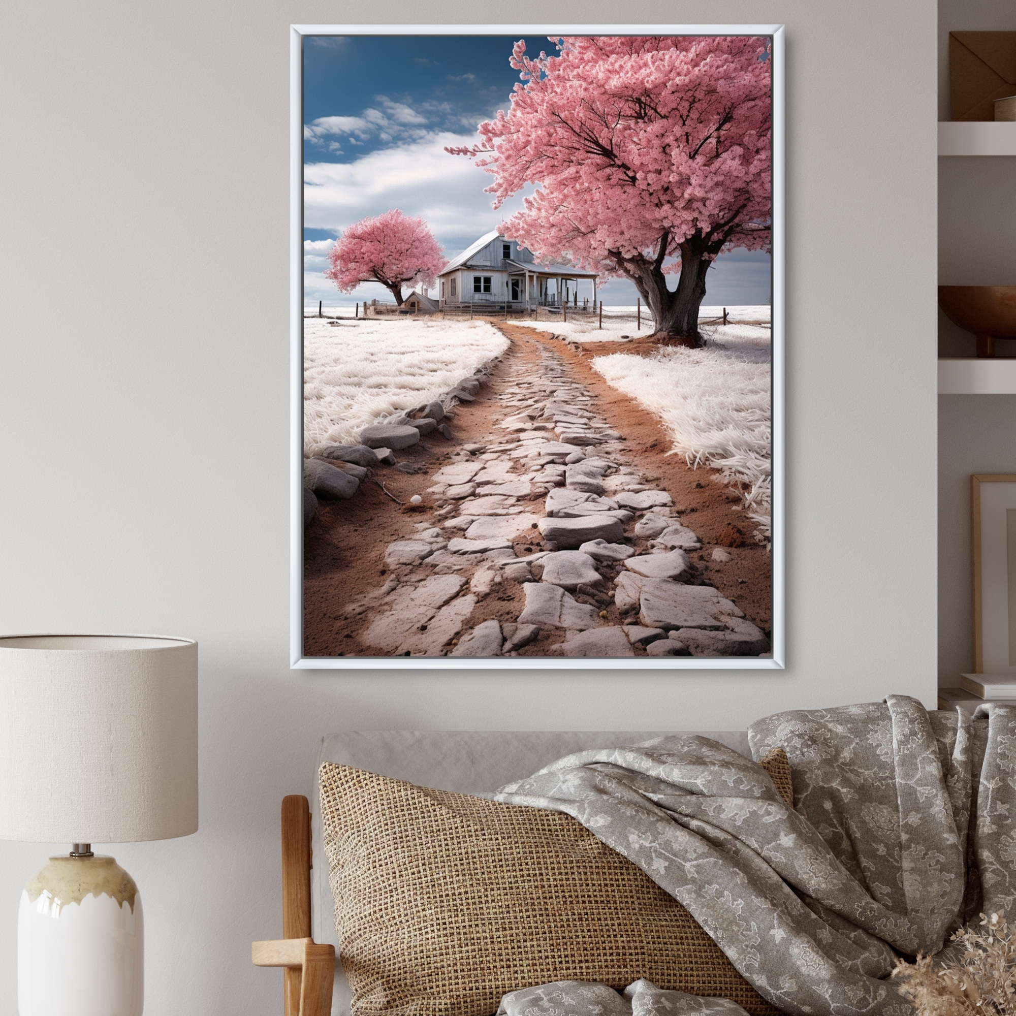 Designart "Pink Farmhouse Homestead Harmony II" Farm Framed Canvas Art Print