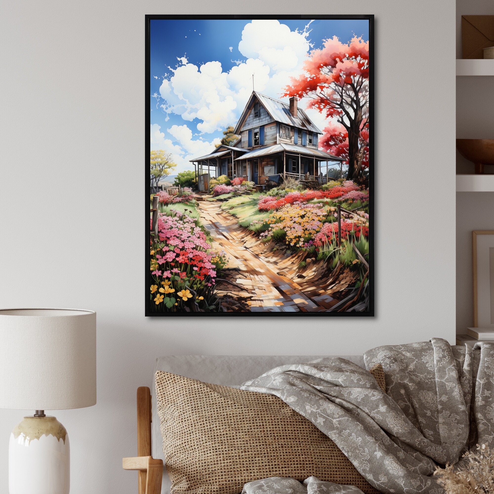 Designart "View From A Cottage Country Door Iii" Farm Landscape Framed Wall Decor