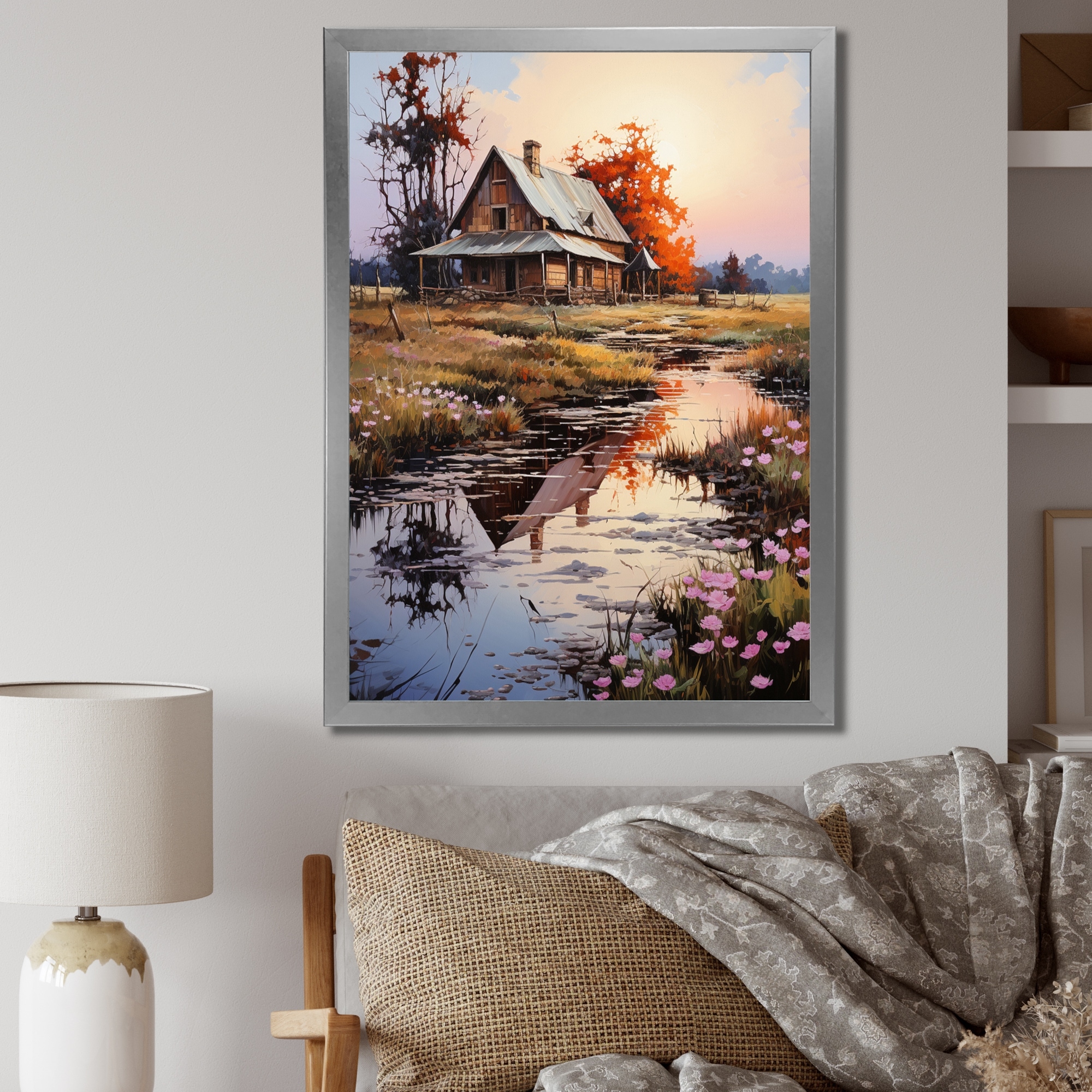 Designart "Farmhouse Homestead Reflections Pointillism" Farm Framed Wall Art Prints