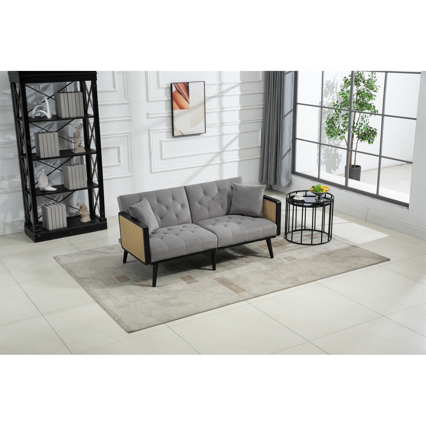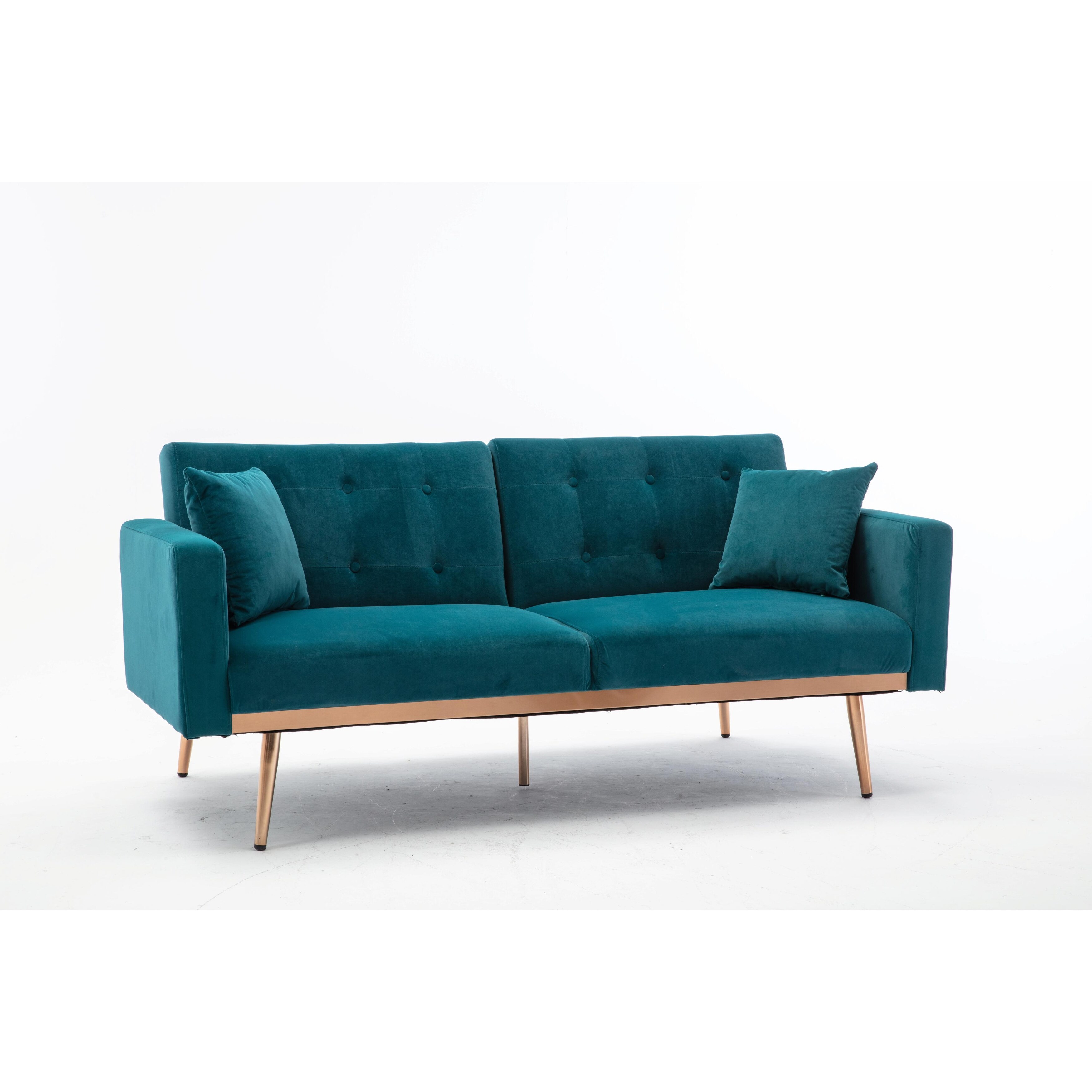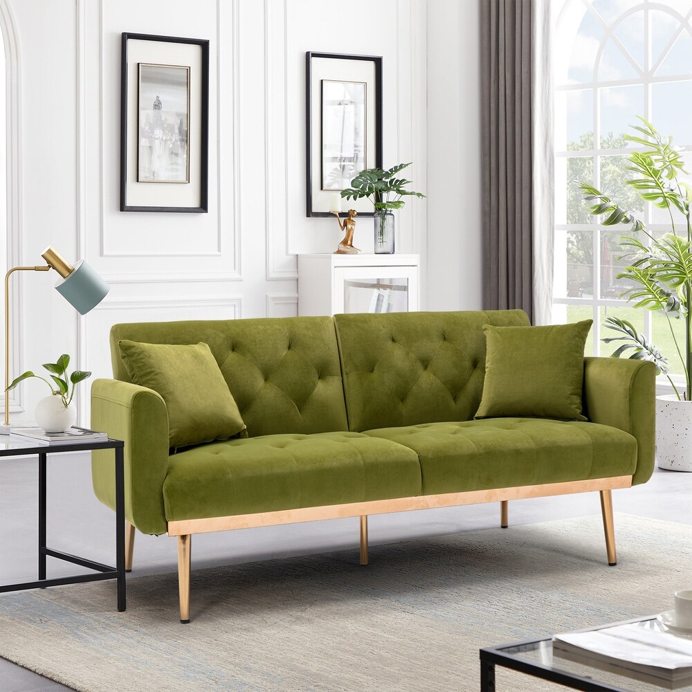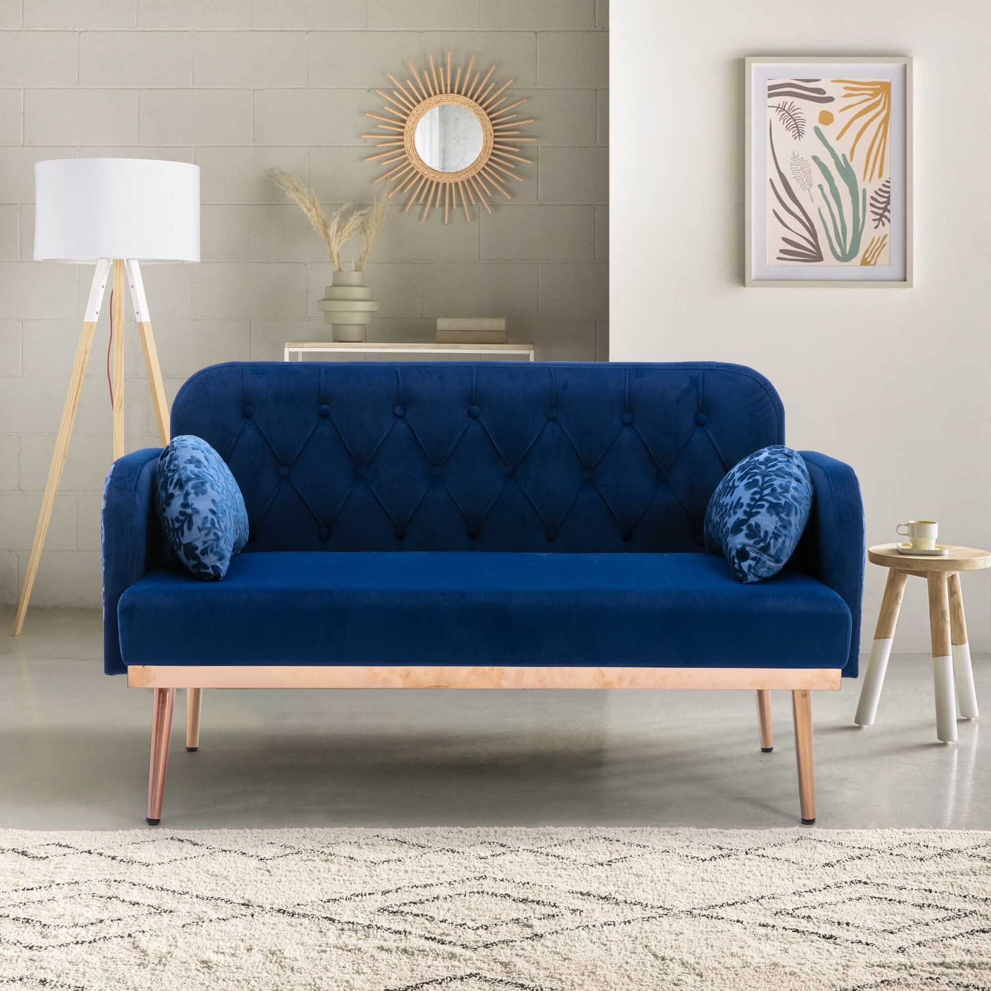 Velvet Upholstered Tufted Loveseats Sleeper sofa with Stainless feet