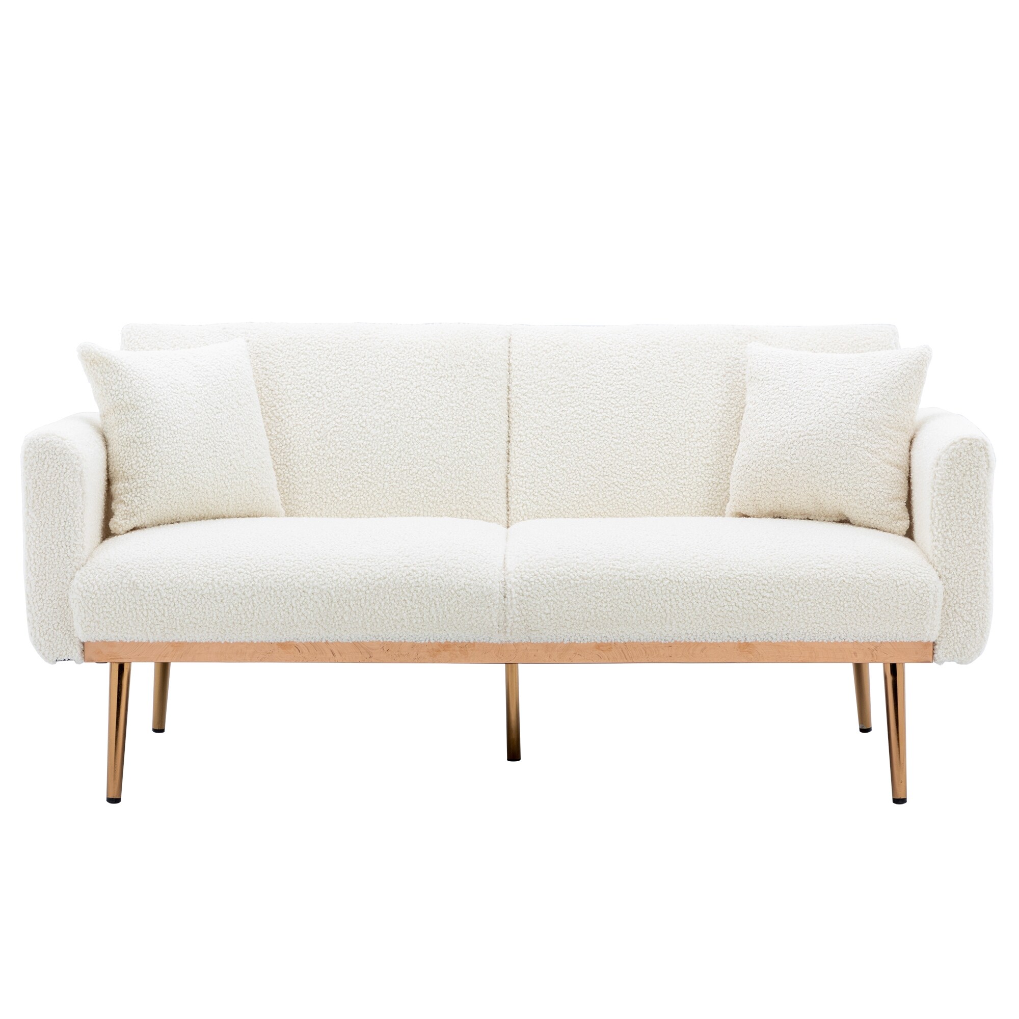 Modern Accent Loveseat Sofa with Metal Feet with Two Printed Pillows, Comfortable and Stylish