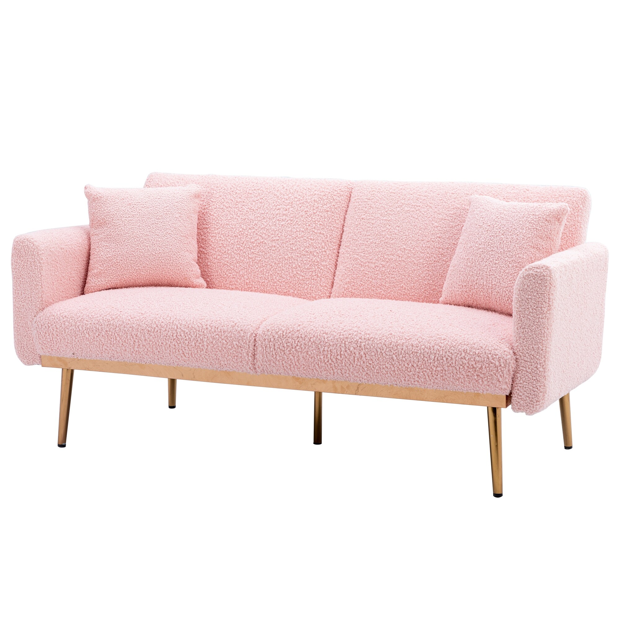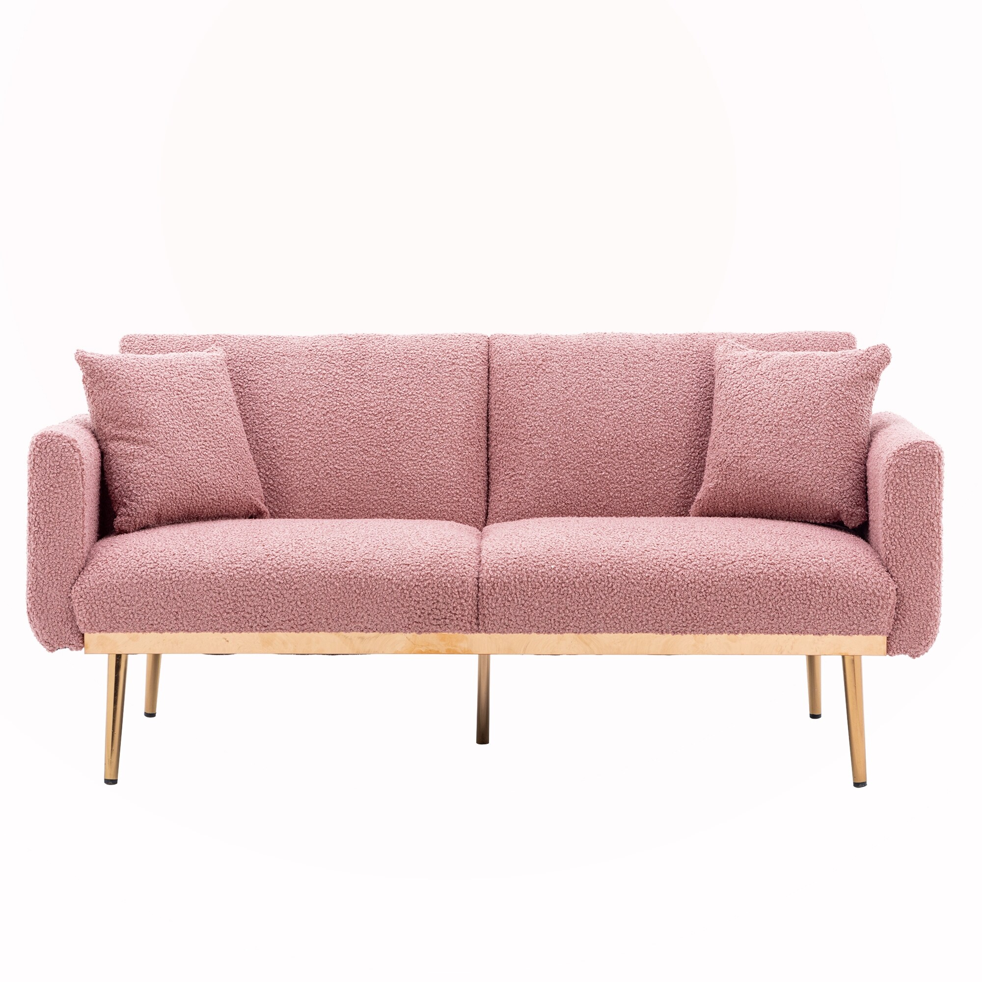 Modern Velvet Sofa with 2 Pillows, Upholstered Accent Sofa, Loveseat Sofa with Metal Feet