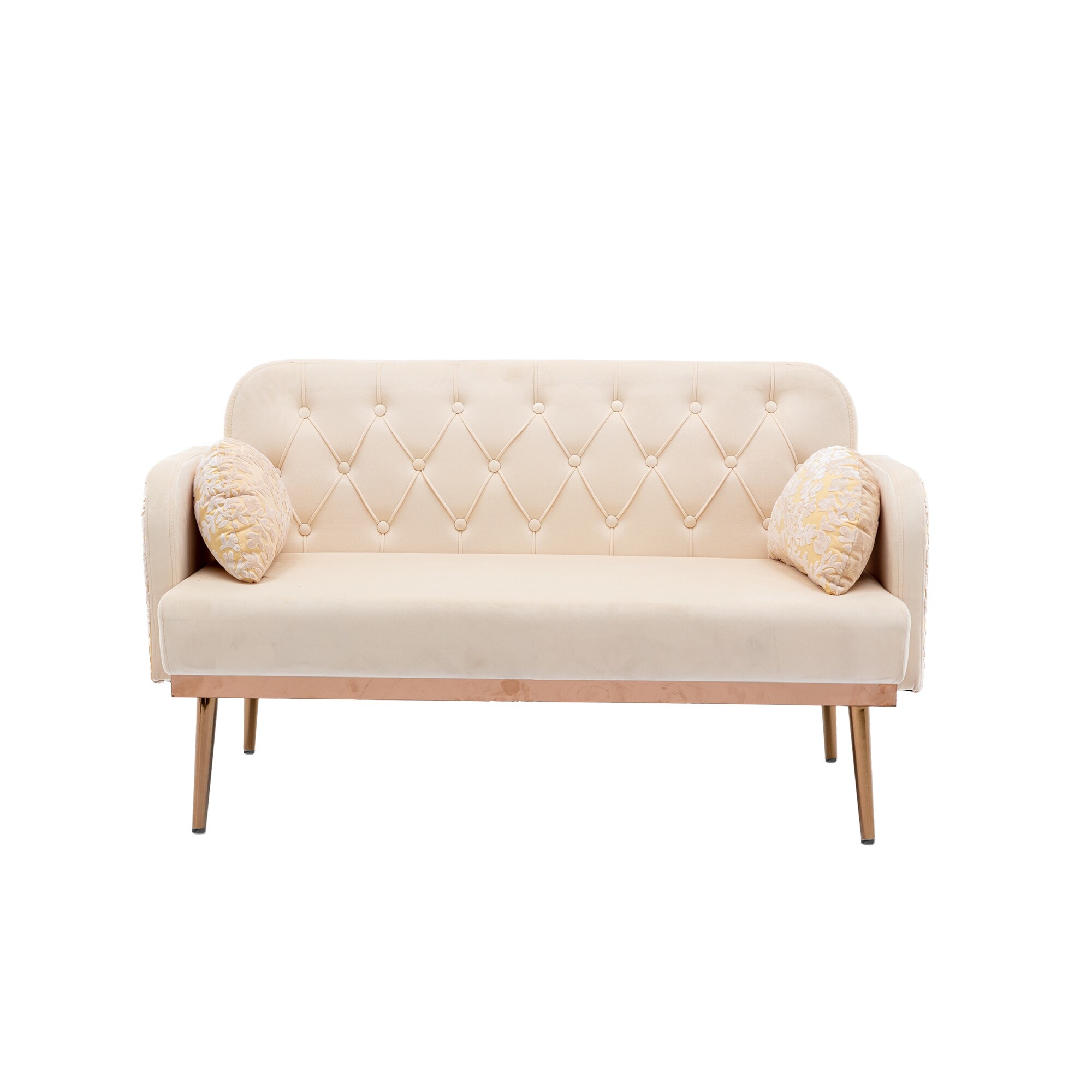 Modern Elegant Loveseat Sofa Comfort Velvet Sofa, Tufted Back Accent Sofa, Loveseat Sofa with Rose Gold Metal Feet