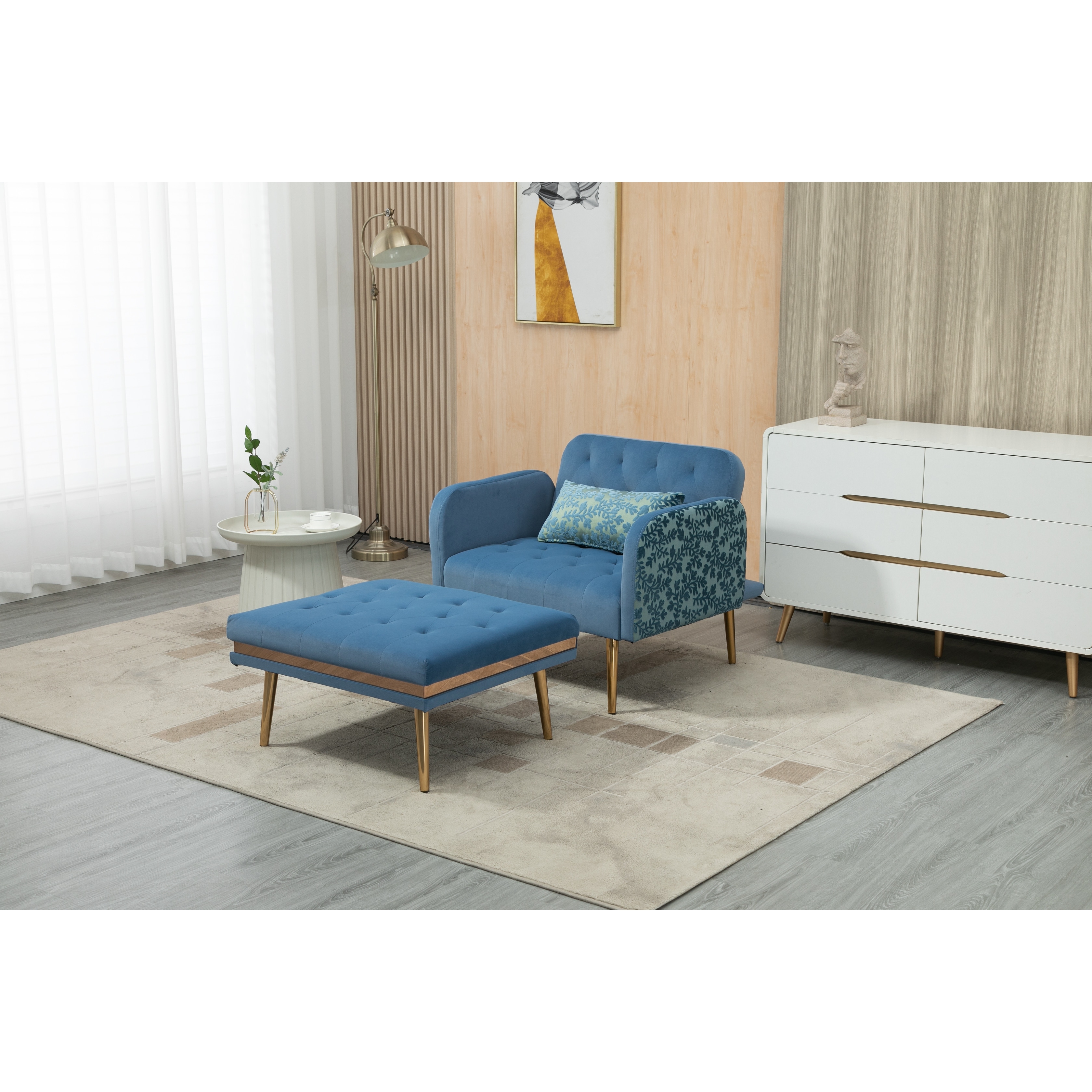 57.87" Modern Velvet Square Print Arm Accent Chair Lounge Chair with Metal Feet Tufted Backrest