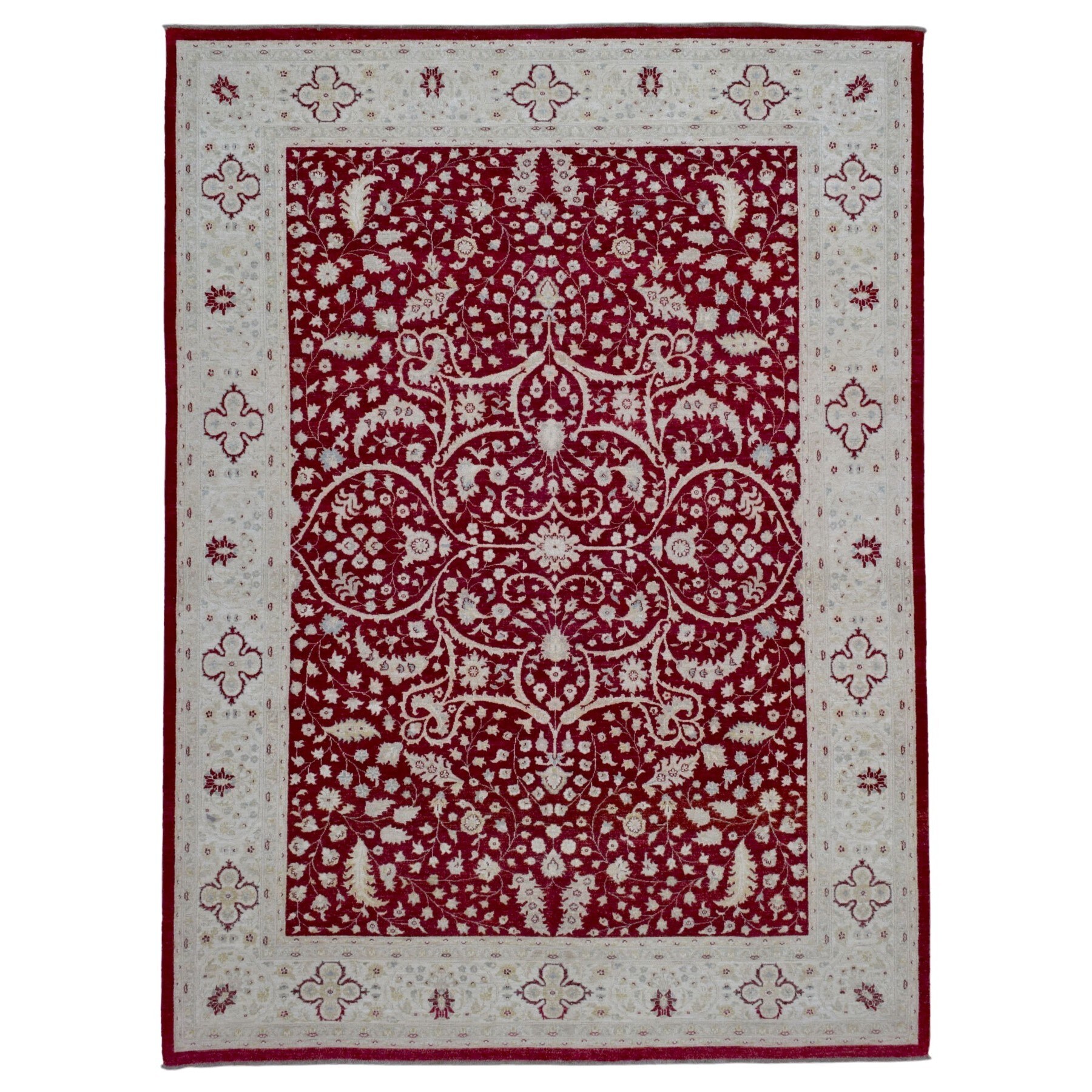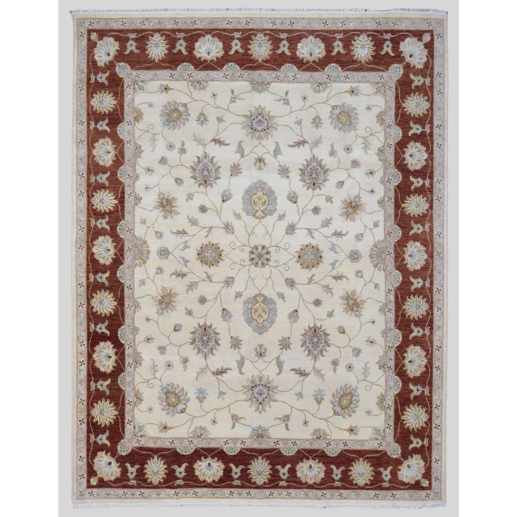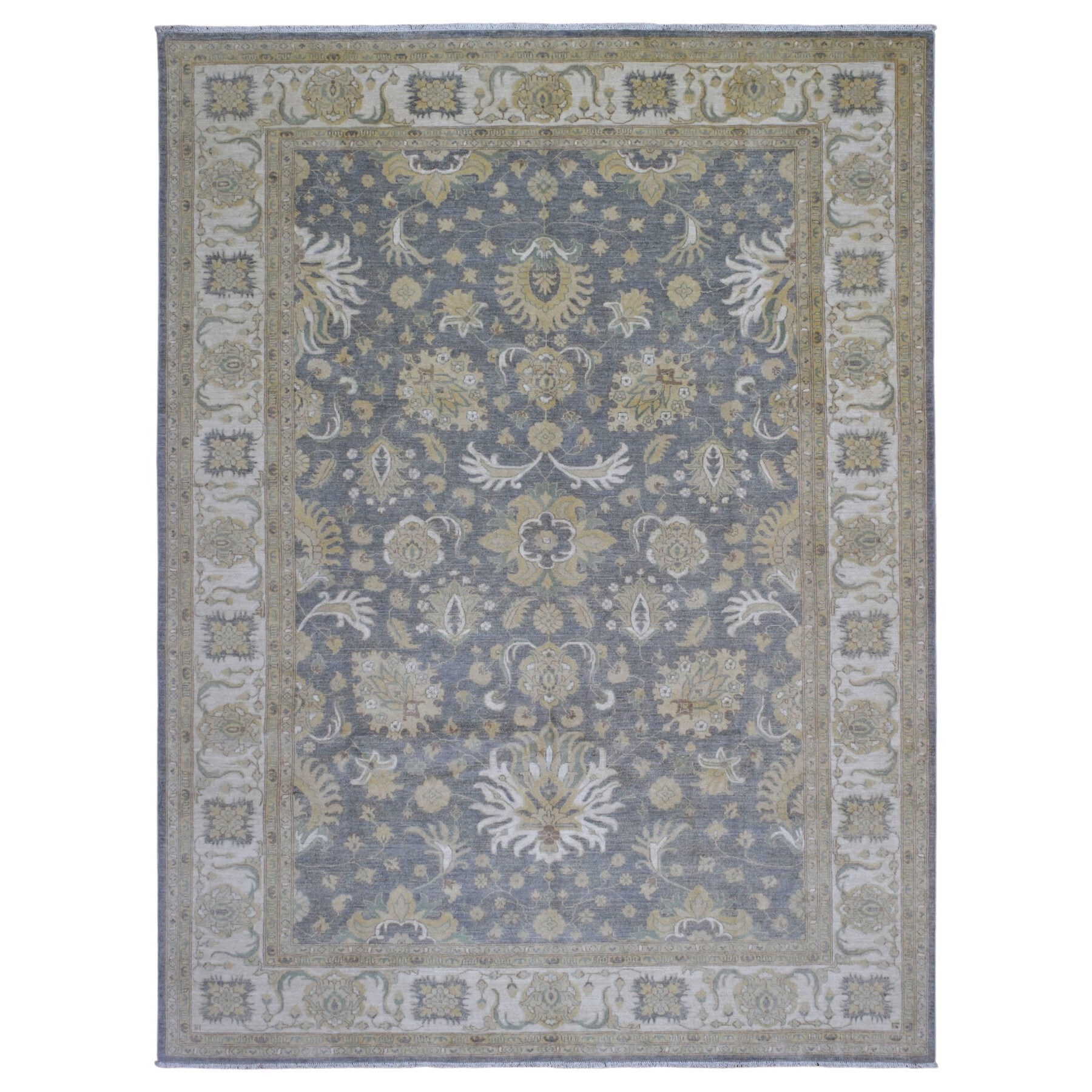 Shahbanu Rugs Ivory, Hand Knotted Densely Woven Fine Peshawar with Mahal Design, Organic Wool, Oriental Rug (8'1" x 9'8")