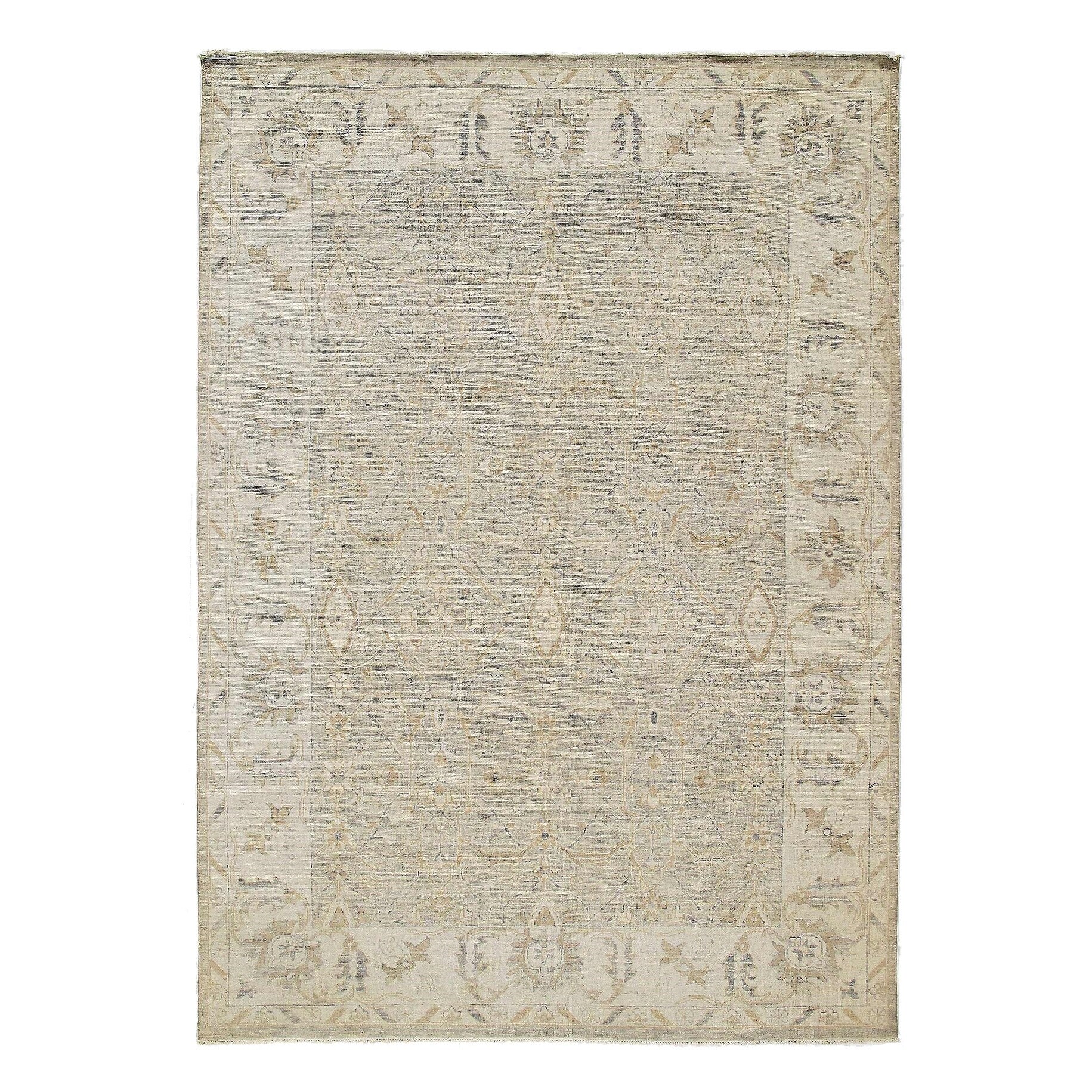 Fine Hand Knotted Oushak design Rug - 10 X 14' - Beige - Olive - 14' x 10'