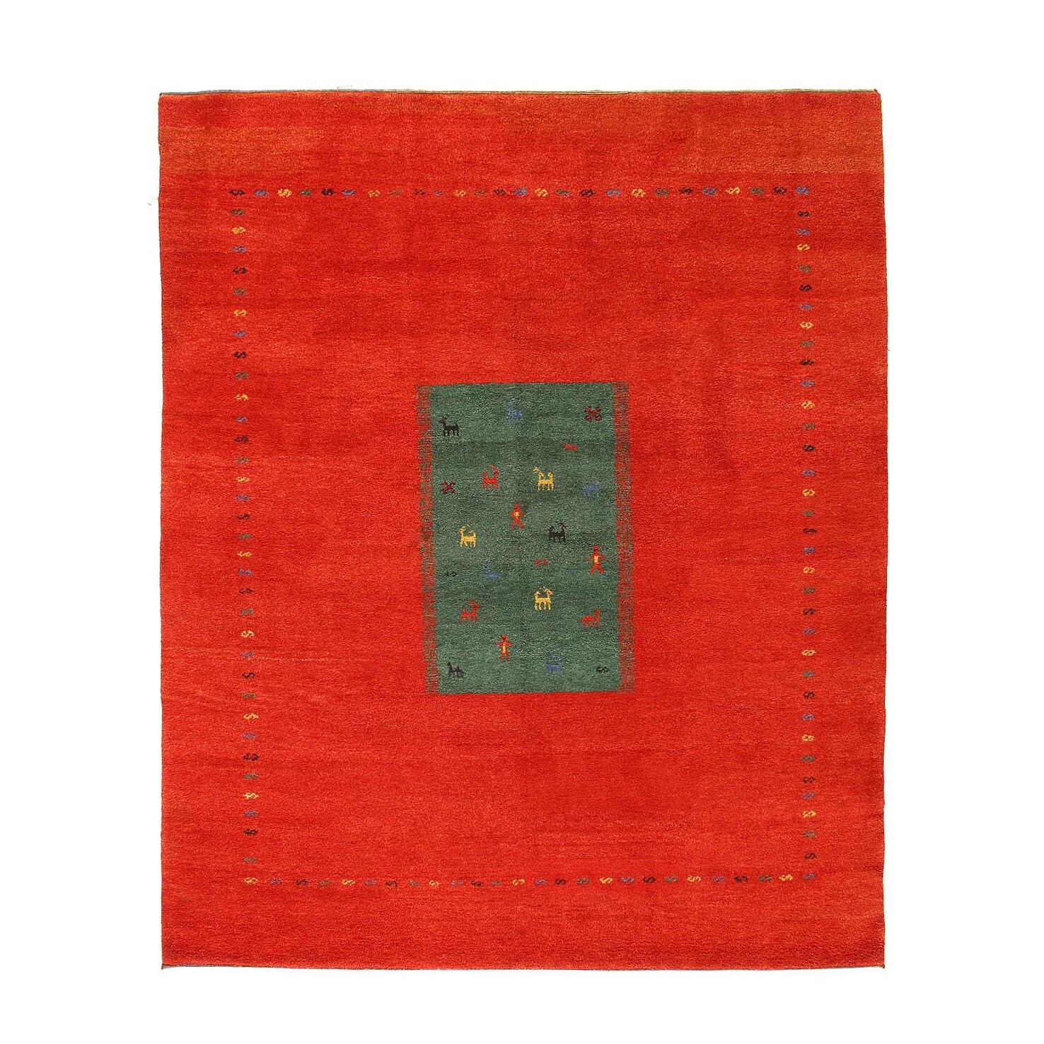Canvello Fine Hand Knotted Gabbeh Rug - 8'6'' X 10' - Red/Green