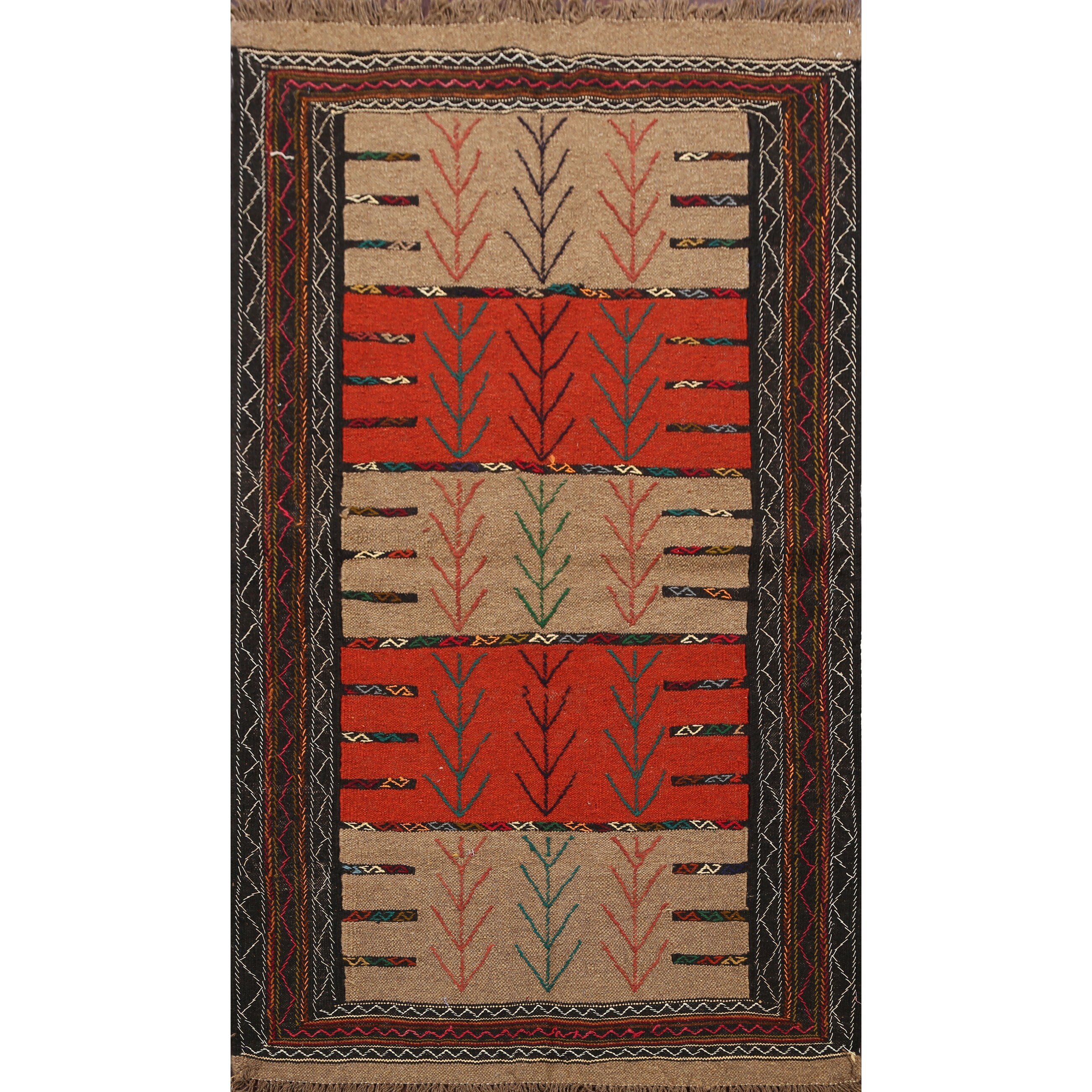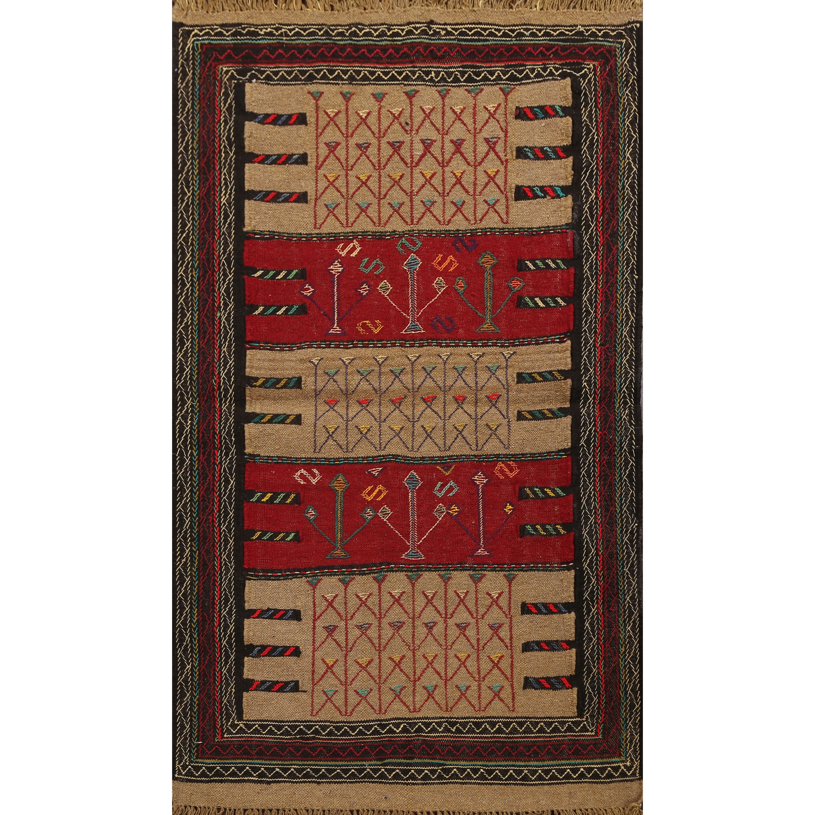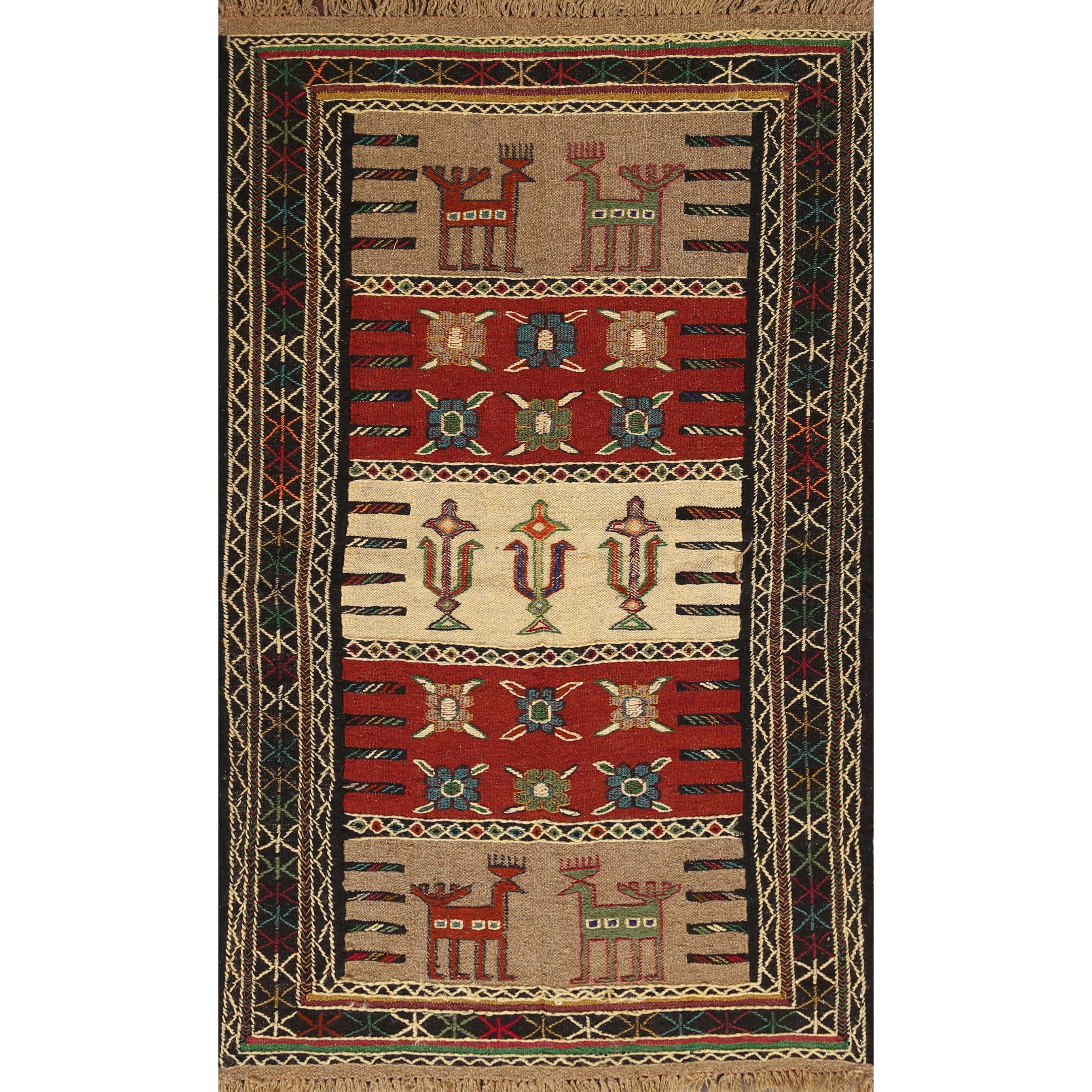 Flat-Woven Tribal Sumak Kilim Persian Wool Area Rug Foyer Carpet - 3'8" x 5'9"